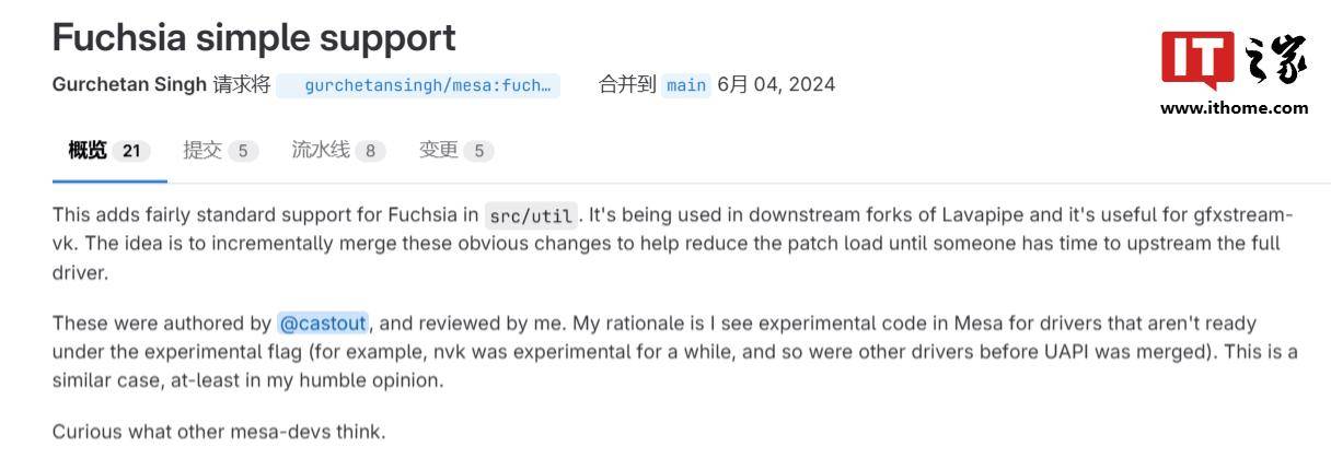 谷歌的新操作系统 Fuchsia OS 已经几个月没有新消息了,Fuchsia OS 团队去年还因裁员遭受重创,可以说前景渺茫。 然而,谷歌又开始了Fuchsia OS 的适配支持,将系统的初步支持添加到Mesa 3D 图形驱动程序堆栈中。 谷歌工程师于 6 月 4 日提交了这一合并请求,目前新补丁已被合并到主线中。谷歌工程师 C Stout 编写了补丁,谷歌的 Gurchetan Singh 则负责将该代码引入 Mesa 主线,写有“Fuchsia simple support”,也就是相当初步的支持。 2023 年初,谷歌宣布发起大规模裁员,预计从公司解雇 1.2 万名员工。当时有消息称负责 Fuchsia OS 操作系统的谷歌员工中,有很大一部分人被纳入了裁员潮。在参与该项目的 400 人中,至少有 16% 的人被解雇了,而谷歌的总体裁员约占所有员工的6%,因此 Fuchsia OS 的裁员是一个很大的比例。 在裁员之前,谷歌 Fuchsia OS 历经至少六年开发,已经发展到用于 Nest Hub 系列智能显示器。作为一款不基于 Linux 的操作系统,FuchsiaOS基于新的名为 Zircon 的微内核,且有望支持运行安卓和 Linux 应用程序。 去年 12 月,谷歌宣布将放弃为 FuchsiaOS引入完整的 Chrome / Chromium 浏览器。新的合并是否意味着谷歌重拾FuchsiaOS 呢,IT之家将跟进后续进展。