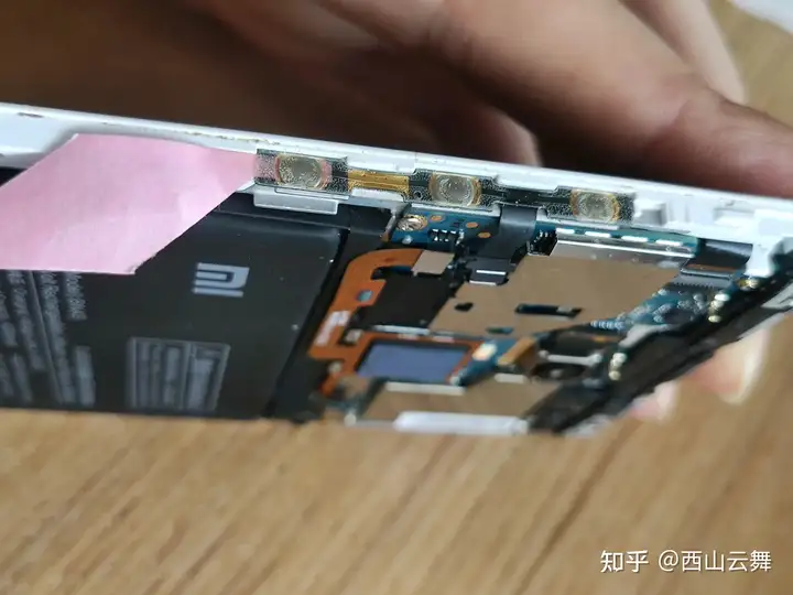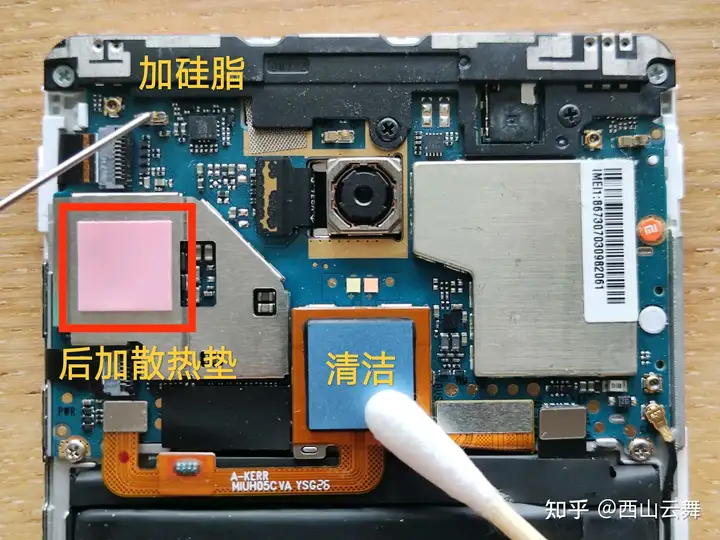 加了一片0.5mm的导热垫,虽然作用不会很大,算是个心理安慰吧。清洁了指纹模块上的污渍,在各个金手指上加了一些润滑硅脂。然后插上电池,插座装上后盖恢复原样。