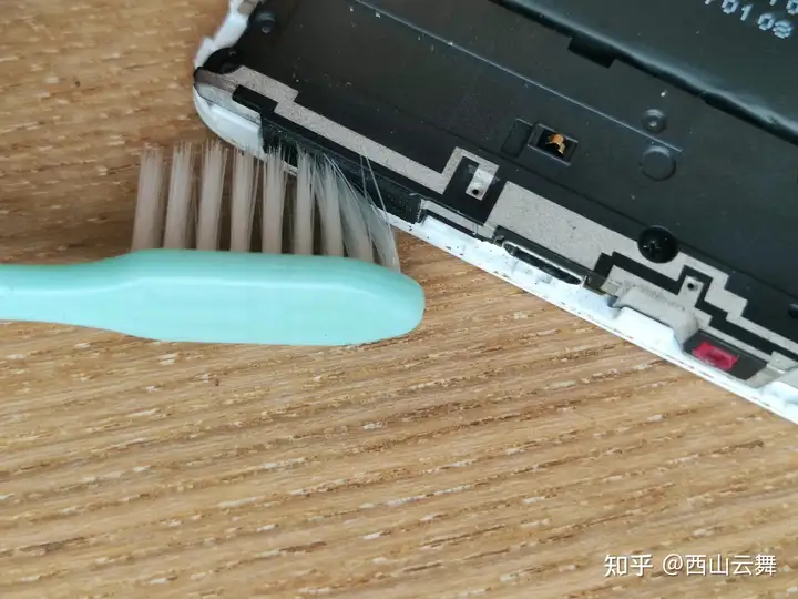 听筒里面堆积了不少灰尘,也是如法炮制。