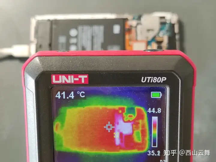 充电的时候拆了后盖,环境温度27℃,面朝上平放在木板上。半小时后电池温升<15℃(电池是7年前出厂),温度高的有两处:电池的保护板,还有指纹底下的屏蔽罩内疑似电源管理电路,两者温升<20℃。