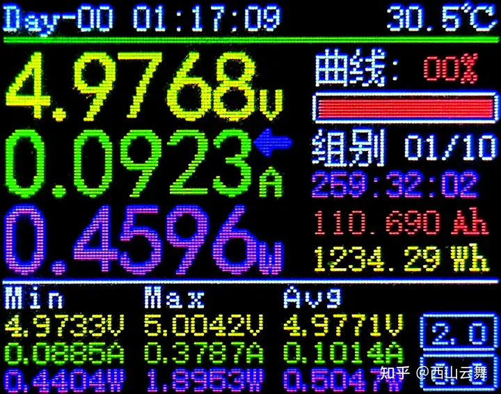 飞行模式最暗屏幕状态下平均功率504.7mW。