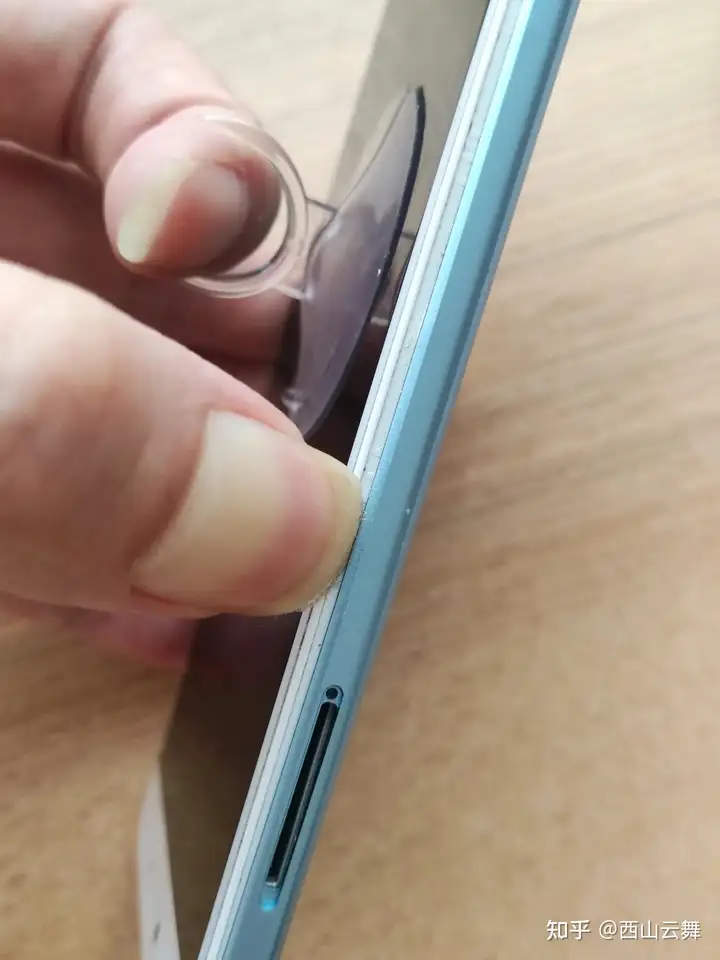 拆开的是我手上的另一台红米NoteX。拔掉手机卡支架,在吸盘的帮助下,用纯天然无污染的拆机撬片划开底壳。