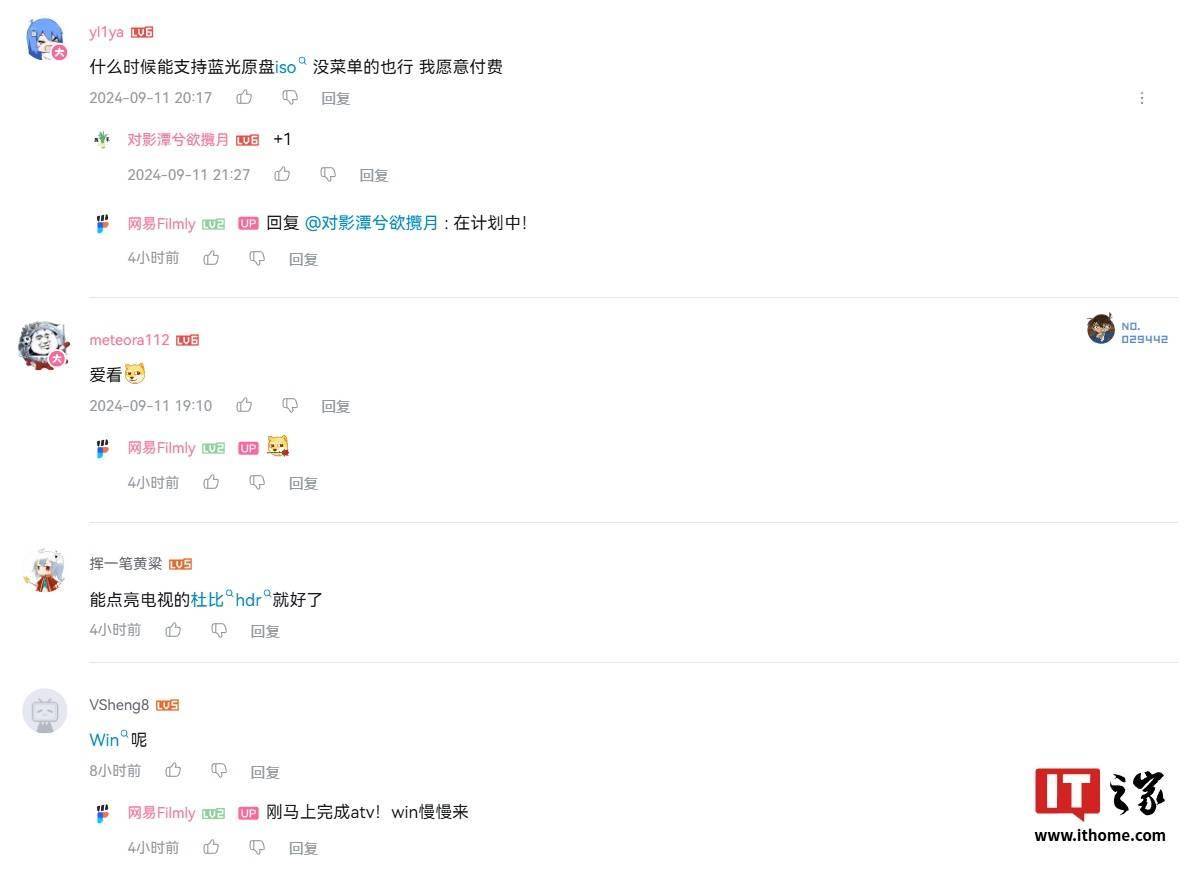 IT之家 9 月 12 日消息,网易 Filmly 播放器官方今日发布 Apple TV 版客户端的功能演示视频,并表示“内部测试体验,还没有过 TF 版”。 从官方放出的应用演示来看,现版本功能趋近完善,应用内左侧为导航栏,设有“同步资源”“首页”“最近播放”“电影”“电视剧”“其他”功能项,底部为“设置”入口。应用内右侧为具体功能页面,支持全屏展示。 网易 Filmly 官方在视频评论区回复了部分网友问题。针对 Apple TV 版上线时间,官方称“还在内部测试,这个月争取上线”;针对 Windows 版,官方则表示“win 慢慢来”;另外,蓝光原盘 ISO 功能“在计划中”。 IT之家此前报道,网易 Filmly 媒体播放器应用支持用户视频资源信息刮削,组成海报墙,可在线播放。目前该应用已上线 iOS、Android、Android TV、macOS 系统,官网显示 Windows 版状态为“敬请期待”。