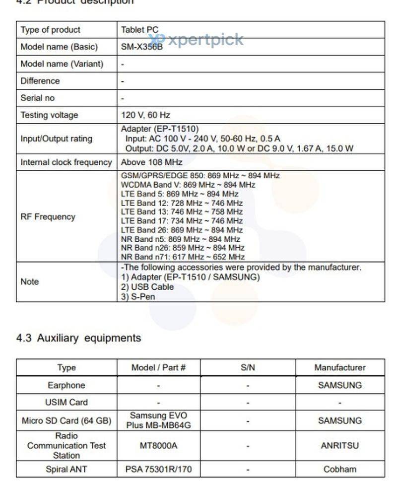 科技媒体 xpertpick 今天(4 月 8 日)发布博文,报道称三星 Galaxy Tab Active 5 Pro 平板在通过阿联酋 TDRA 认证后,其蜂窝网络版本(型号 SM-X356B)又通过美国联邦通信委员会(FCC)审核,标志着上市进入倒计时。 根据认证信息,这款专为户外场景设计的平板将延续 Active 系列的坚固机身和可拆卸电池特性,并在越南工厂生产,存储方面标配 128GB 容量,并保留 microSD 卡扩展槽。 通信功能上,SM-X356B 版本覆盖 n1 / n3 / n5 等 15 个 5G 频段,同时支持 Wi-Fi 802.11ac、NFC 和蓝牙。值得注意的是,设备将兼容 S Pen 手写笔操作,充电功率为 15W,可能搭配 EP-T150 电源适配器。韩国认证机构还披露,面向本土市场的 SM-X356N 型号及 Wi-Fi 版 SM-X350 同样支持 15W 充电。 性能方面,IT之家此前报道,该平板此前已通过 Geekbench 跑分库,搭载高通骁龙 7s Gen 3 处理器,配备 6GB 内存,预装安卓 15 系统。作为 2024 年 Tab Active 5 的迭代款,Pro 版预计将提升硬件表现。