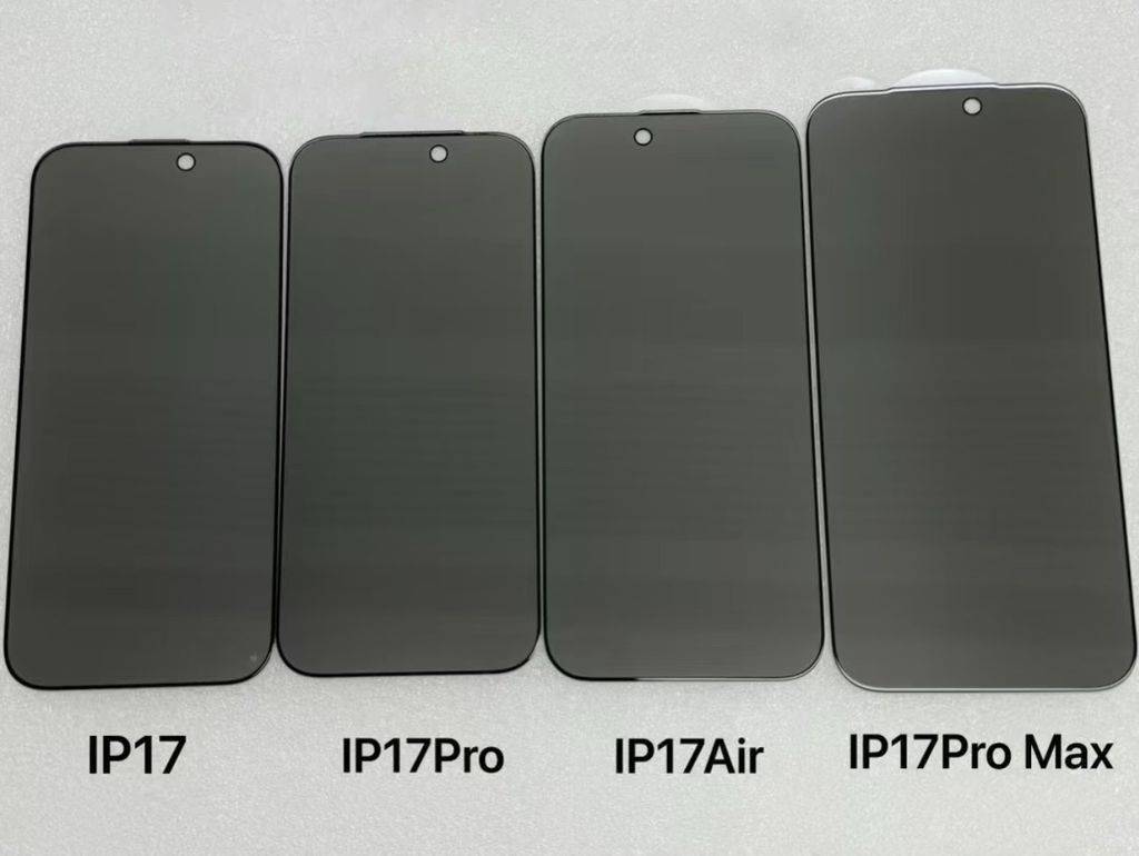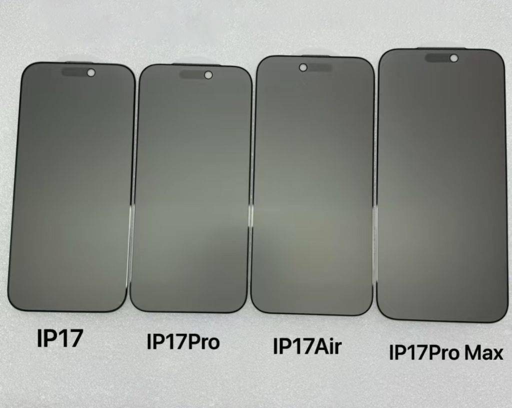 科技媒体 majinbuofficial 昨日(6 月 26 日)发布博文,分享了一组 iPhone 17 系列四款机型的屏幕保护膜,其中 iPhone 17 Air 前置摄像头的位置,从传统的右侧移至左侧。 根据曝光的图片显示,iPhone 17、iPhone 17 Pro、iPhone 17 Pro Max 三款手机的前置摄像头均位于屏幕顶部偏右位置。IT之家附上图片如下: 但唯独 iPhone 17 Air 是“另类”,前置摄像头位于屏幕顶部偏左位置。该媒体认为有以下几种可能: - 苹果调整设计布局:苹果正尝试新的设计布局,将摄像头移至左侧可能会提升视频通话和自拍体验,为用户带来新的角度和交互方式。
