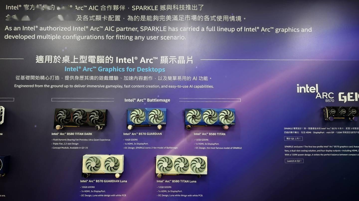 英特尔显卡合作伙伴之一的撼与 SPARKLE 此前已在锐炫 B580 这一型号上推出过两款泰坦 TITAN 产品线的显卡产品,分别是标准的蓝色 OC 型号和 LUNA 白色 OC 型号。 而根据外媒 VideoCardz 取得的消息,撼与接下来还将推出黑色的锐炫 B580 TITAN NOX OC。 ▲ 图源:VideoCardz 从外观上来看,该显卡与撼与在 5 月的 COMPUTEX 2025 台北国际电脑展上曾展出过的 B580 TITAN DARK 概念原型没有显著区别,可能仅是简单的命名调整。 ▲ 左上方为 TITAN DARK,右上方为 TITAN,右下方为 TITAN LUNA ▲ 图源:VideoCardz ▲ 图源:VideoCardz ▲ 图源:VideoCardz NOX 黑色版本的撼与锐炫 B580 TITAN OC 预计将延续此前版本的参数设定:三维 315×117×44 (mm),GPU 加速频率 2800MHz(IT之家注:+130MHz)。