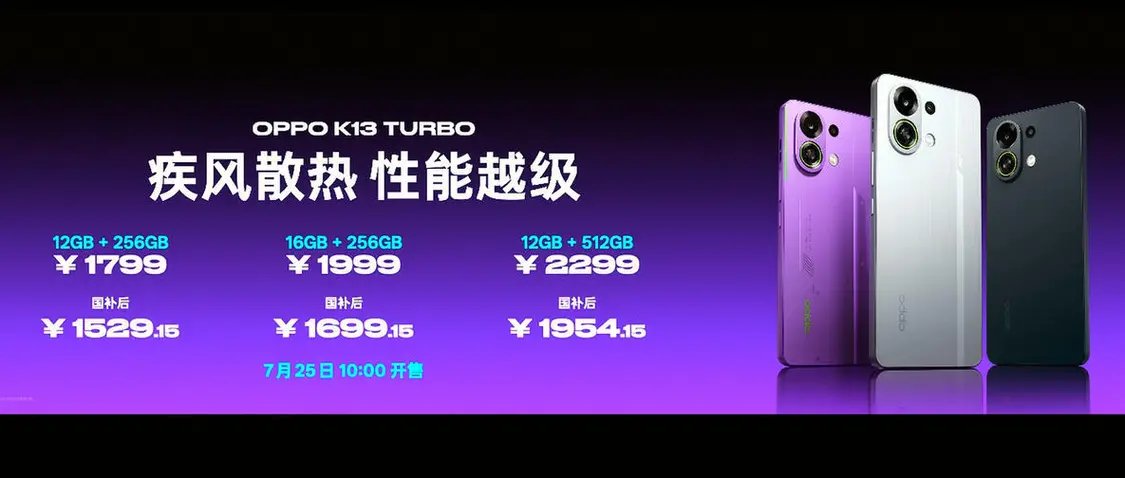 凤凰网科技讯(作者/于雷)7月21日 OPPO今日正式推出了其K系列全新力作——OPPO K13 Turbo系列,通过引入历时四年研发的主动式风冷散热技术,为性能手机市场带来了新的解决方案。该系列包含OPPO K13 Turbo与K13 Turbo Pro两款机型,起售价分别为1799元和1999元,将于7月25日10时正式开售。