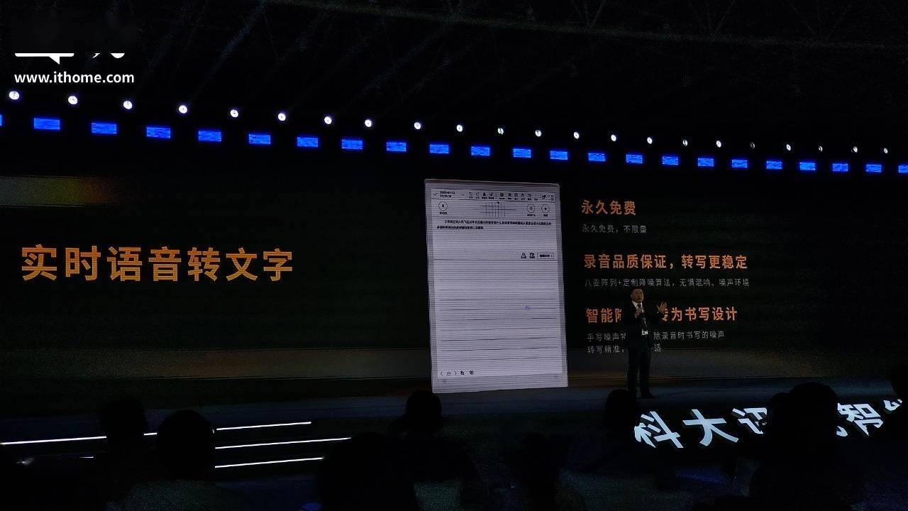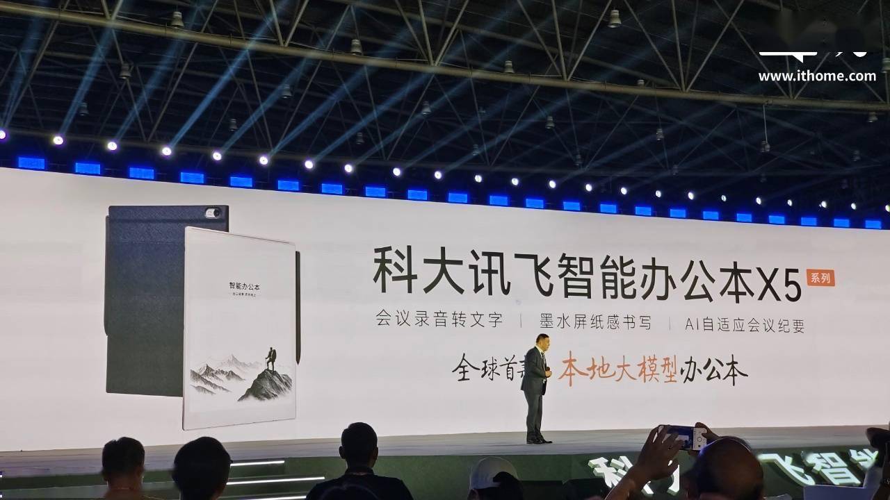 IT之家 7 月 22 日消息,在目前正在进行的科大讯飞发布会中,科大讯飞智能办公本 X5 系列电纸书正式登场,系列电纸书主打商务用途,提供“会议录音转文字、墨水笔纸感书写、AI 自适应会议纪要”功能,标准版(64GB 存储空间)定价 4999 元起,Pro 版(128GB 存储空间)定价 5699 元起。 系列电纸书号称是“世界上最薄的智能办公本”,厚度 4.6mm,相比上一代厚度减少 15%,机身重量 355g,提供 8 麦克风阵列,匹配定制降噪算法。 该机屏幕上覆盖有专门为手写笔优化的手写膜,官方手写笔提供 Wacom 东云三代笔芯,号称拥有更真实的阻尼感。 系列电纸书配备联发科 MT8189 芯片,内置 6GB LPDDR5 RAM,支持安装第三方 APK(APK 沙箱运行)。搭载比亚迪 4.5V 高压电池技术,拥有 4500 毫安时容量,实现能量密度提升 15%、电池厚度降低 14%、电池容量提升 7%,号称“一次充电一周使用”。 系统软件方面,官方重点介绍该机支持手写笔记 OCR 纠错、会议录音转文字、实时语音转文字,同时还支持实时说话人注册功能(根据不同人声自动新建匹配不同说话人),支持中 / 英 / 方言免切换,还能通过会议语音内容生成 AI 纪要。 其他方面,IT之家获悉该机支持全链路隐私安全,支持“笔记保密箱、硬件级一键离线拨片”等功能。