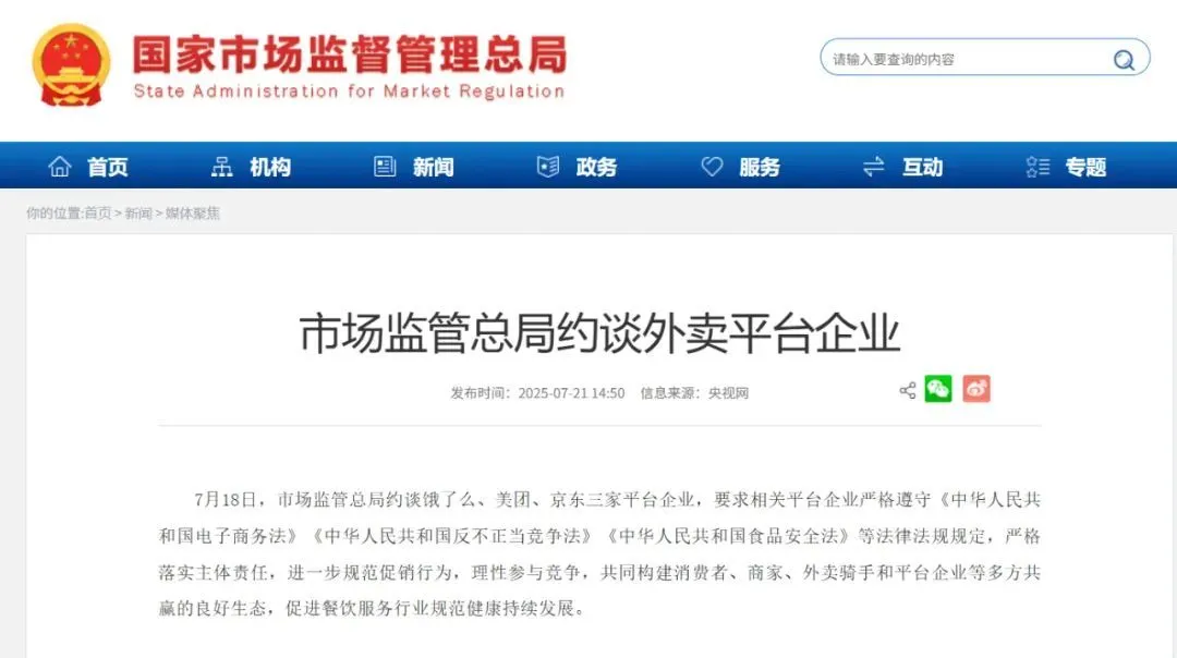 国家相关部门、行业、商家等各方在对外卖大战的观点上趋于一致。2025年5月,国家市场监管总局便已联合中央社会工作部、中央网信办、人力资源社会保障部、商务部等部门,约谈京东、美团、饿了么等主要平台企业,要求规范市场竞争秩序,停止恶性价格战,保障中小商家合理利润空间。