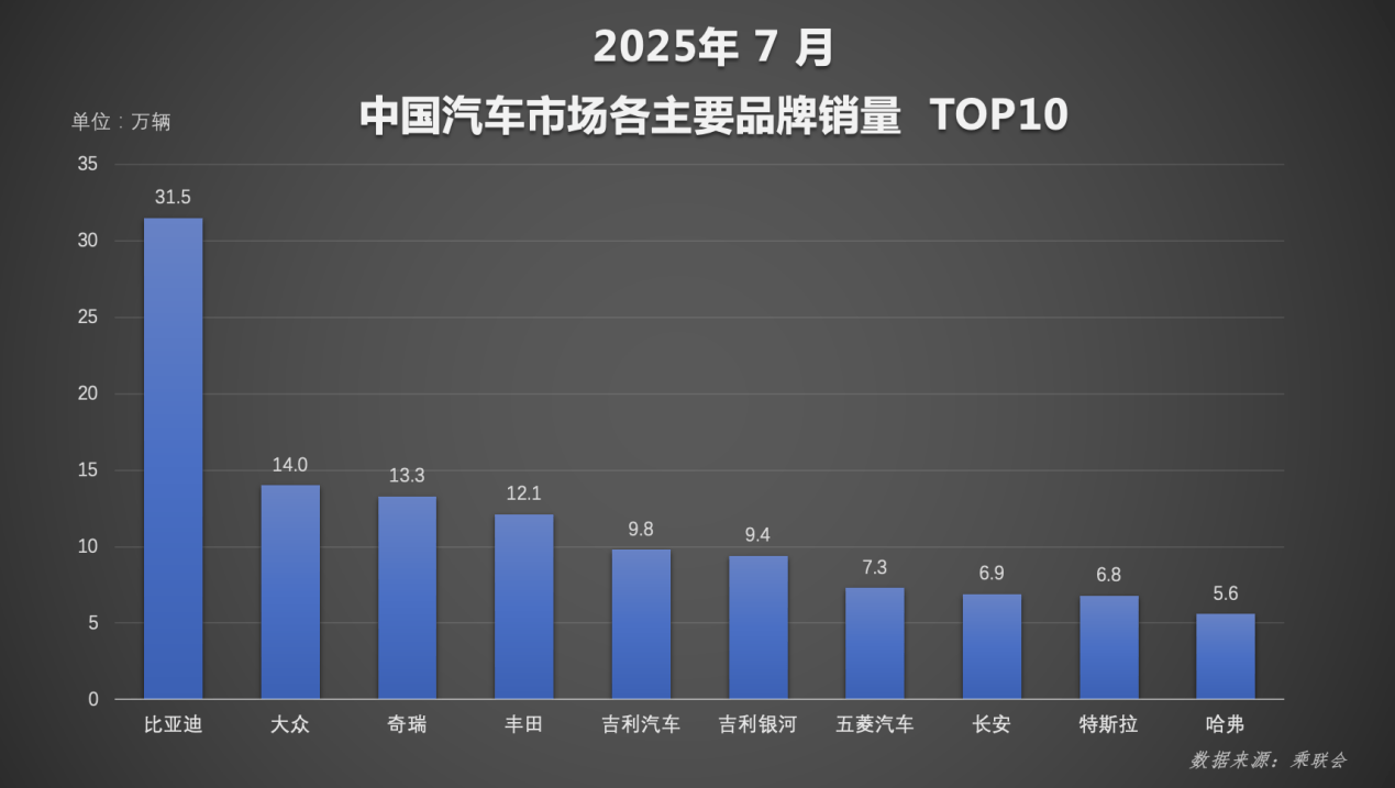 7 月开始,中国车市正式进入 2025 年下半场较量。尽管处于传统销售淡季,比亚迪依旧保持稳健表现,绝对领先优势持续扩大。在企业(集团)新能源汽车、单品牌两个核心维度,其单月及 1-7 月累计销量均继续稳居销量榜首,用实力诠释了“淡季不淡”的领跑之姿。