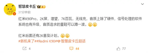其他方面,REDMI K90 Pro还将会配备7000mAh以上的超大电池,并支持百瓦快充。