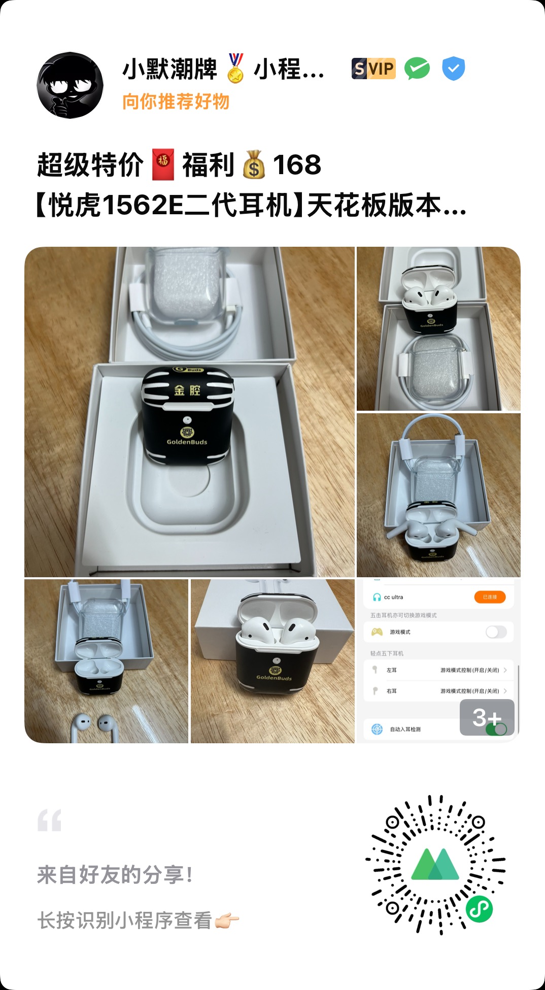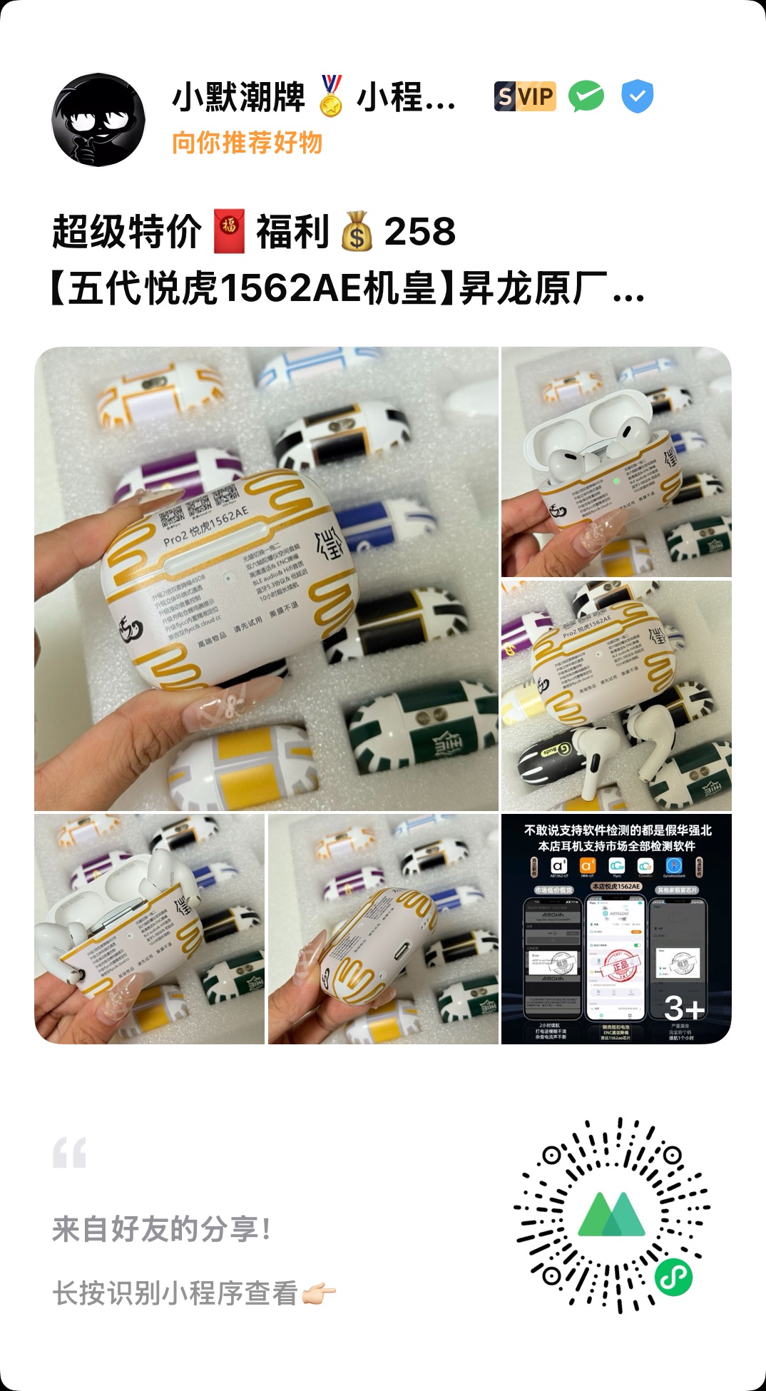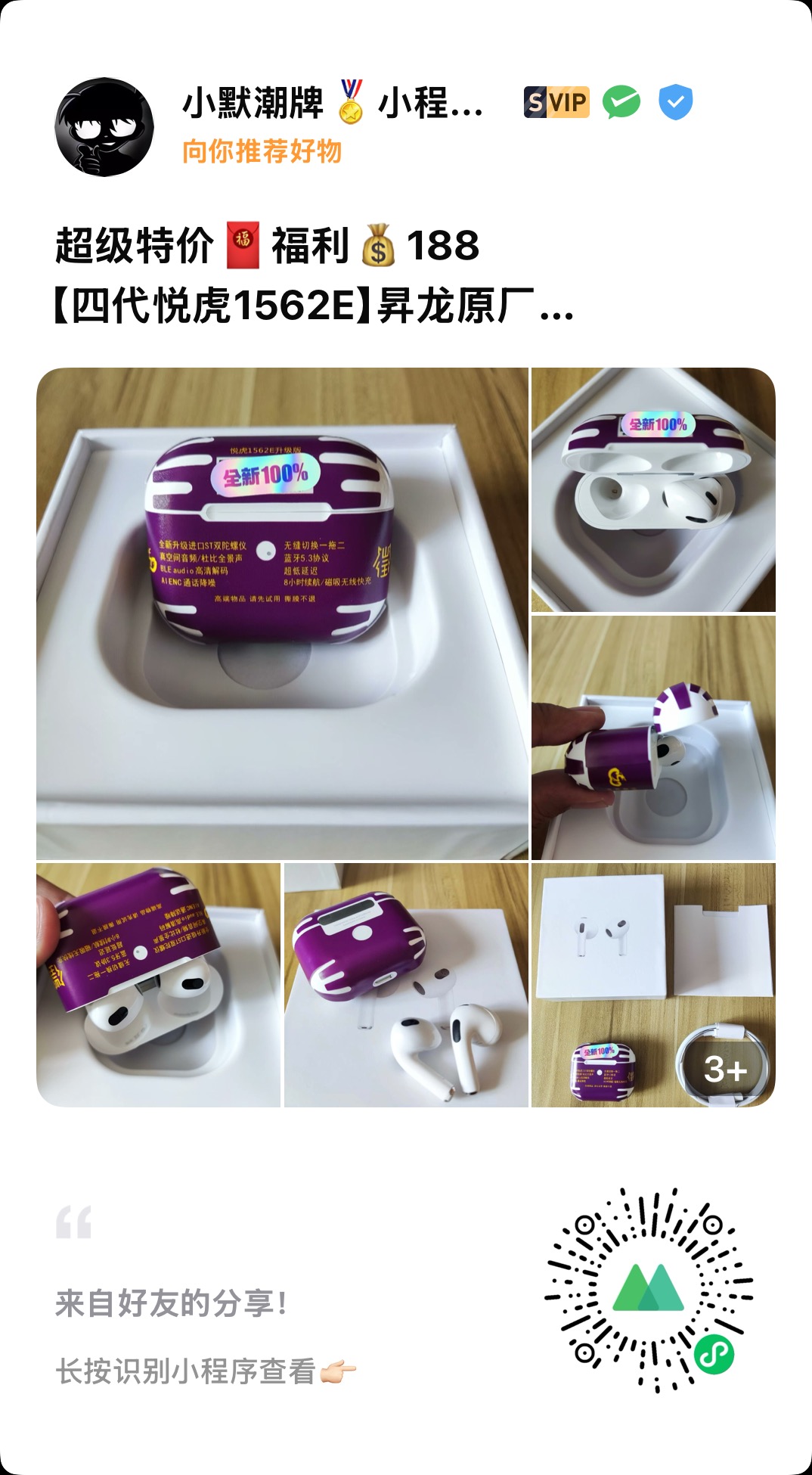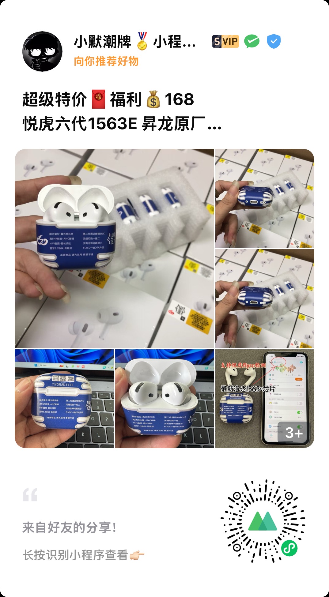 【前面好多个帖子都还有很多没吃完的M币 冲鸭!!!】 二代四代五代六代都是华强北顶配 支持检测!价格优势,对接工厂强势出货 售后质保90天 非人为质量问题只换不修(哪里坏了换哪里) 下单备注数码之家-10 送保护套 注意:壳料很贵 耳机有膜 撕膜不退 签收24小时内不喜欢退回 确认耳机要才撕膜 记得说明数码之家看到~~不然报价为正常报价~~只为赚点零花钱!! 不打价格战 坚持只做优质产品 靠的住的好产品 不与其他廉价货对比! 一分钱一分货,我们不做一次姓交易,一次性产品,诚信经营。我们希望每一单都能成为回头客 电子产品不可能十全十美,我们只能保证是同款里最好的,市面最高版本,过分挑剔请移步专.柜 |