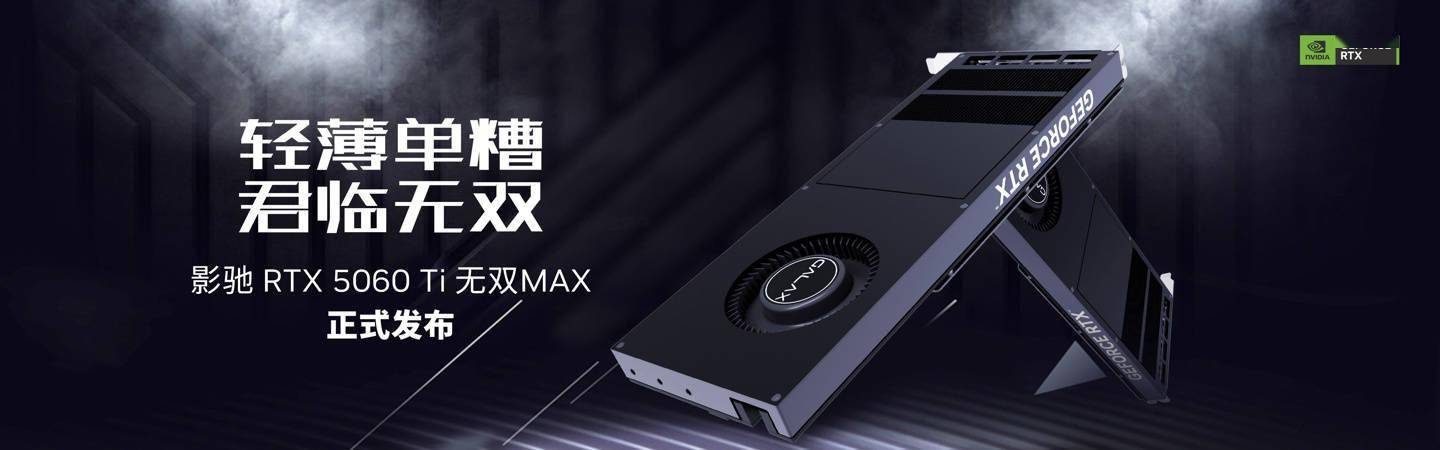 IT之家 10 月 10 日消息,影驰昨日正式发布了 GeForce RTX 5060 Ti 无双 MAX,这张显卡配备 16GB GDDR7 显存,采用涡轮风扇散热,厚度仅有单槽 20mm。 RTX 5060 Ti 无双 MAX 显卡专为高度密度部署而生,尾出单 PCIe 8-Pin。其基于 8 层 PCB,搭载 8+2 相供电,配备 BW 无双散热系统,采用霍尼韦尔相变片 TIM + 均热板 + 黑化全铜鳍片 + 涡轮风扇的组合。 该显卡不含挡板长 267mm、高 111mm,采用标准频率和功耗设计,拥有 3 个 DisplayPort 2.1b 和 1 个 HDMI 2.1b,市场售价 4999 元。