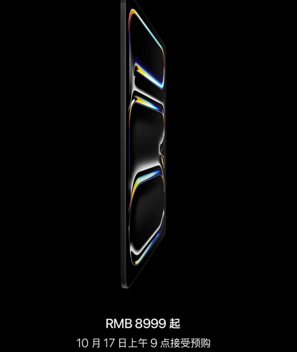 新款iPad Pro售价8999元起,同样在10月17日上午9点接受预购,并在10月22日发售。配置上,新版iPad Pro搭载iPados 26,拥有一块超精视网膜XDR屏,搭载全新N1无线网络芯片,支持Apple Pencil Prol,起步内存容量升至12GB。