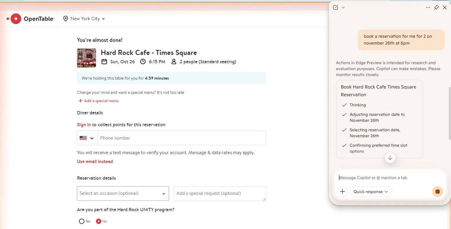 科技媒体 Windows Report 昨日(10 月 23 日)发布博文,报道称微软宣布扩展其 Edge 浏览器内的 Copilot 模式,将作为 Copilot 秋季更新计划的核心部分向用户开放,并表示正致力于将浏览器转变为一个“动态、智能的伴侣”。 此次升级在 7 月已发布版本的基础上,提供了更智能的导航、规划与任务执行方式,目的是让用户无需离开浏览器即可高效完成工作。 本次更新最引人注目的,是引入了名为“行动”(Actions)的 AI 功能。该功能支持用户通过简单的语音或聊天命令执行日常任务,IT之家附上相关演示如下: 例如,用户可以直接要求 Copilot 打开特定网页、总结页面内容,甚至一键退订塞满收件箱的购物促销邮件。微软同时预告,未来“行动”功能还将支持处理更复杂的多步骤任务,如无需动手即可预订晚餐或管理个人行程。 另一项核心功能是“旅程”(Journeys),它能有效解决用户返回未完成项目时面临的困扰。Edge 浏览器现在可以按主题自动分组用户过去的浏览会话,而不是让用户手动重新打开数十个标签页。 通过这项功能,用户可以轻松“跳回”上次中断的地方,继续进行如课题研究、旅行规划或购物比价等长期任务,AI 还会提供相关的后续步骤建议。 在功能扩展的同时,微软也增强了隐私控制与安全性。新版本允许用户自主选择是否授权 Copilot 使用浏览历史,以获取更精准的个性化推荐,并且该数据访问权限采用授权后开启模式,用户可随时撤销。 安全方面,Edge 新增了 AI 驱动的恐吓软件拦截器以阻止欺诈性弹窗,并改进了密码管理器,提供全天候的密码泄露监控。