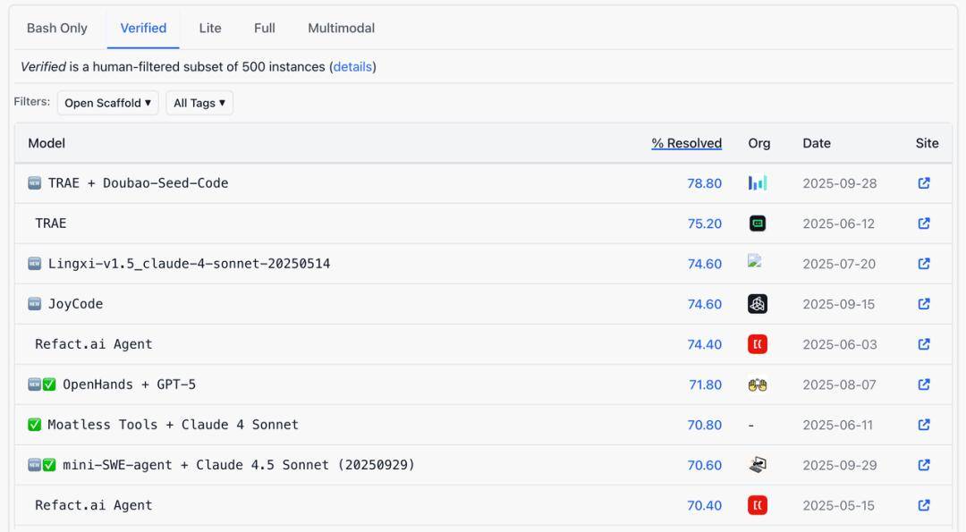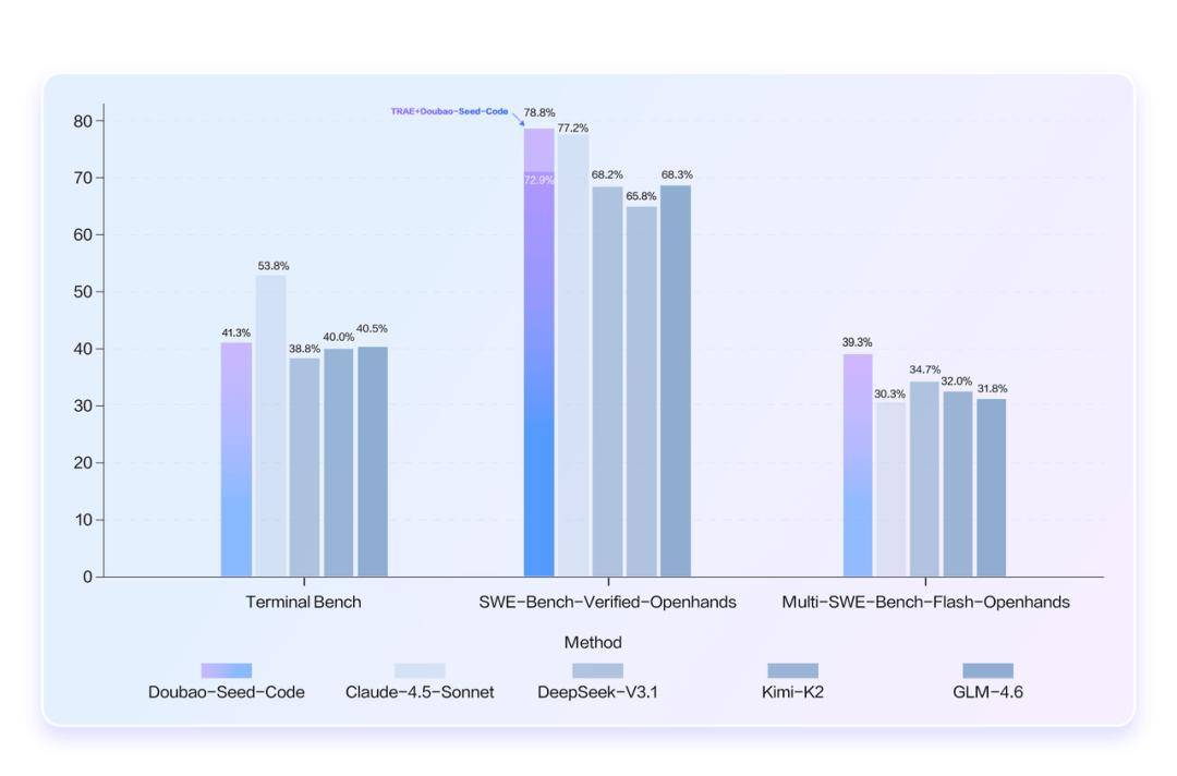 TRAE 中国版正式接入豆包编程模型。为了更好地支持企业级 AI 开发场景,TRAE (CN) 企业版今日正式公测。 IT之家附官方介绍如下: 面向 Agentic 编程任务深度优化 Doubao-Seed-Code 面向 Agentic 编程任务进行了深度优化,在 Terminal Bench、SWE-Bench-Verified-Openhands、Multi-SWE-Bench-Flash-Openhands等多项权威基准测试中表现优异,领先国内同类模型。 Doubao-Seed-Code 支持 256K 长上下文,可以轻松处理长代码文件、多模块依赖等复杂场景,更好支持端到端自主编程,在全栈开发中表现良好,前端能力尤为突出。同时,作为国内首个支持视觉理解能力的编程模型,它可参照 UI 设计稿、截图或手绘草图生成代码,或对生成页面进行视觉比对,自主完成样式修复和 Bug 修复,大幅提升前端开发效率。 面向开发者的实际需求,Doubao-Seed-Code 还针对 Anthropic API、TRAE 等主流开发生态做了兼容。对于使用 Claude Code 的团队,只需几行代码即可切换到 Doubao-Seed-Code,享受更高性价比的服务。 强大性能背后,Doubao-Seed-Code 依赖于一套大规模 Agent 强化学习训练系统。 该系统内构建了覆盖十万容器镜像的庞大训练数据集,具备万级并发沙盒会话的能力,可以对上千卡的单个 RL 任务实现高效训练。基于这套系统,模型无需蒸馏或标注的冷启动数据,完全依靠端到端强化学习训练即可练就顶尖的 Agent 能力,优化路径更简洁高效。 训练结果显示,模型在 Multi-SWE-Bench 和 SWE-Bench-Verified 两个数据集上的表现稳定上升,展现出良好的泛化能力。在 SWE-Bench 基准测试中,仅依赖 RL 训练的 Doubao-Seed-Code 模型就可达到最优水平,表明纯强化学习在真实编程场景下具备潜力。 值得关注的是,与 TRAE 开发环境深度结合后,Doubao-Seed-Code 在 SWE-Bench Verified 榜单中达到 78.80% 的成绩,取得了新的 SOTA,充分验证了模型与工具深度适配后的协同效应。 综合使用成本国内最低,更有 Coding Plan 优惠计划 Doubao-Seed-Code 不止性能强,更考虑开发者的实际需求,将成本红利最大限度交给开发者。其沿用了火山引擎首创的分层定价模式,并配合全量透明 Cache 能力,在多轮对话中进一步降低成本。综合来看,Doubao-Seed-Code 输入、输出单价已达国内最低: - 0-32k 输入区间:输入 1.20 元 / 百万 Tokens,输出 8.00 元 / 百万 Tokens