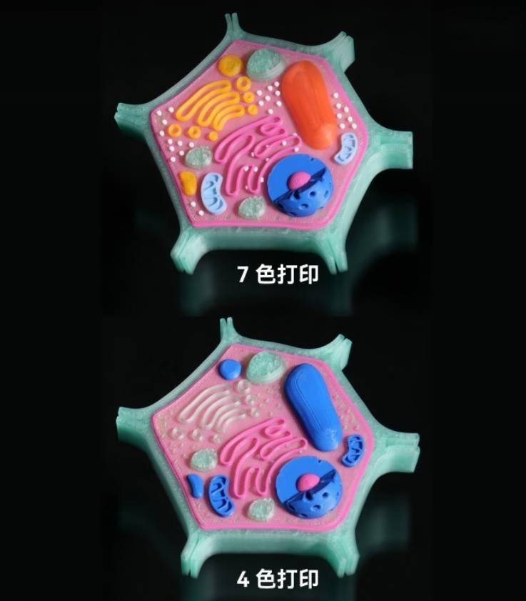 拓竹 H2C 支持一次打印 7 色成型、刚性零件与柔性关节一体打印、多材料一体成型打印;搭载 Vortek 热端切换系统,减少废料产生。