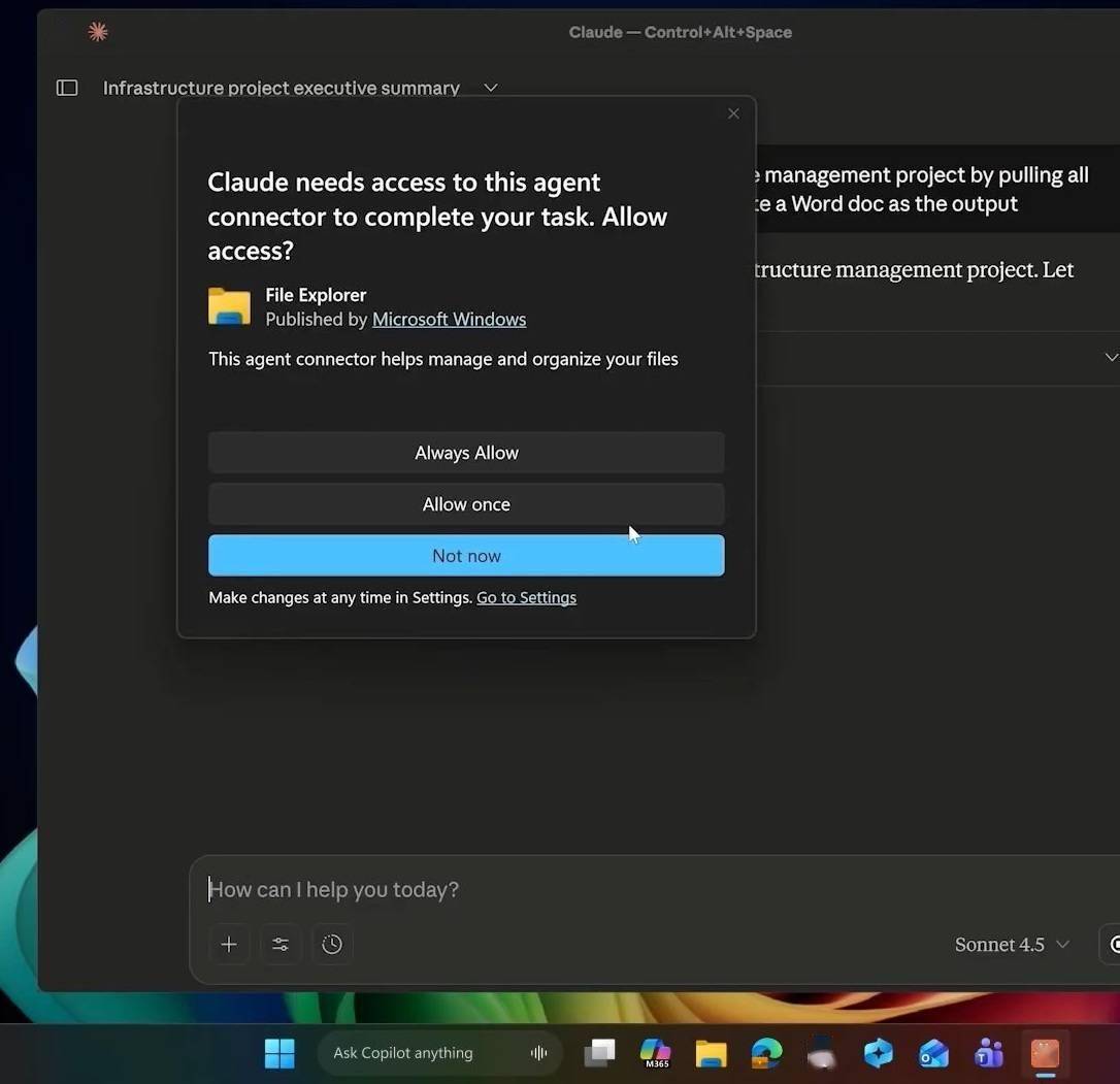 科技媒体 Windows Latest 今天(11 月 19 日)发布博文,报道称在 Windows 11 系统中,微软正在测试一项革新性功能,支持 Claude 等第三方 AI 应用通过文件资源管理器直接请求访问本地文件和文件夹。 IT之家援引博文介绍,微软表示此举旨在打破传统 AI 工作流中需要手动查找并上传文件的壁垒,从而显著提升用户处理文档、制作演示文稿乃至开发网站等任务的效率。 这项新功能的核心技术是“模型上下文协议”(MCP),当用户在与 AI 应用(例如 Claude)对话时,可以直接指令 AI 使用特定文件夹中的文件,如“用‘我的文档’里的资料生成一份 PPT”。 AI 应用会通过 MCP 协议请求访问权限,获批后直接抓取文件内容进行处理,整个过程文件本身不会被上传到云端。微软强调,这是一种更高效的内容共享方式,避免了应用切换和文件上传的繁琐步骤。 新功能将解锁多种高效的应用场景。微软官方演示,用户可以命令 AI 利用设备上的照片,快速构建一个专业的房地产网站,AI 会自动定位并选取合适的图片文件来填充网站图库。 此外,用户还能让 Claude 总结整个文档文件夹的内容,并基于总结结果创建 PowerPoint 演示文稿。微软甚至提出了一个名为“随心编程”(vibe code)的概念,即 AI 能够利用本地文件内容,轻松地为用户构建功能齐全的网站。 尽管这项集成带来了便利,但也引发了潜在的安全风险。[Windows Latest] 等媒体指出,由于 AI 将获得访问整个文件夹的权限,目前无法保证它不会因为“幻觉”(AI 生成错误或虚构信息)而扫描或访问本不应触碰的敏感文件,这构成了隐私泄露的隐患。 微软也正在测试名为“代理工作区”(Agentic Workspace)的相关功能,允许 AI 代理在后台持续运行,这进一步加剧了对数据安全的担忧。 关于新功能的上线时间,微软向 [Windows Latest] 透露,部分较为基础的 AI 功能,例如通过 Copilot 总结文档,将在未来几周内完成推送。然而,对于核心的、允许第三方 AI 应用直接集成文件资源管理器的功能,微软尚未公布明确的上线时间表。