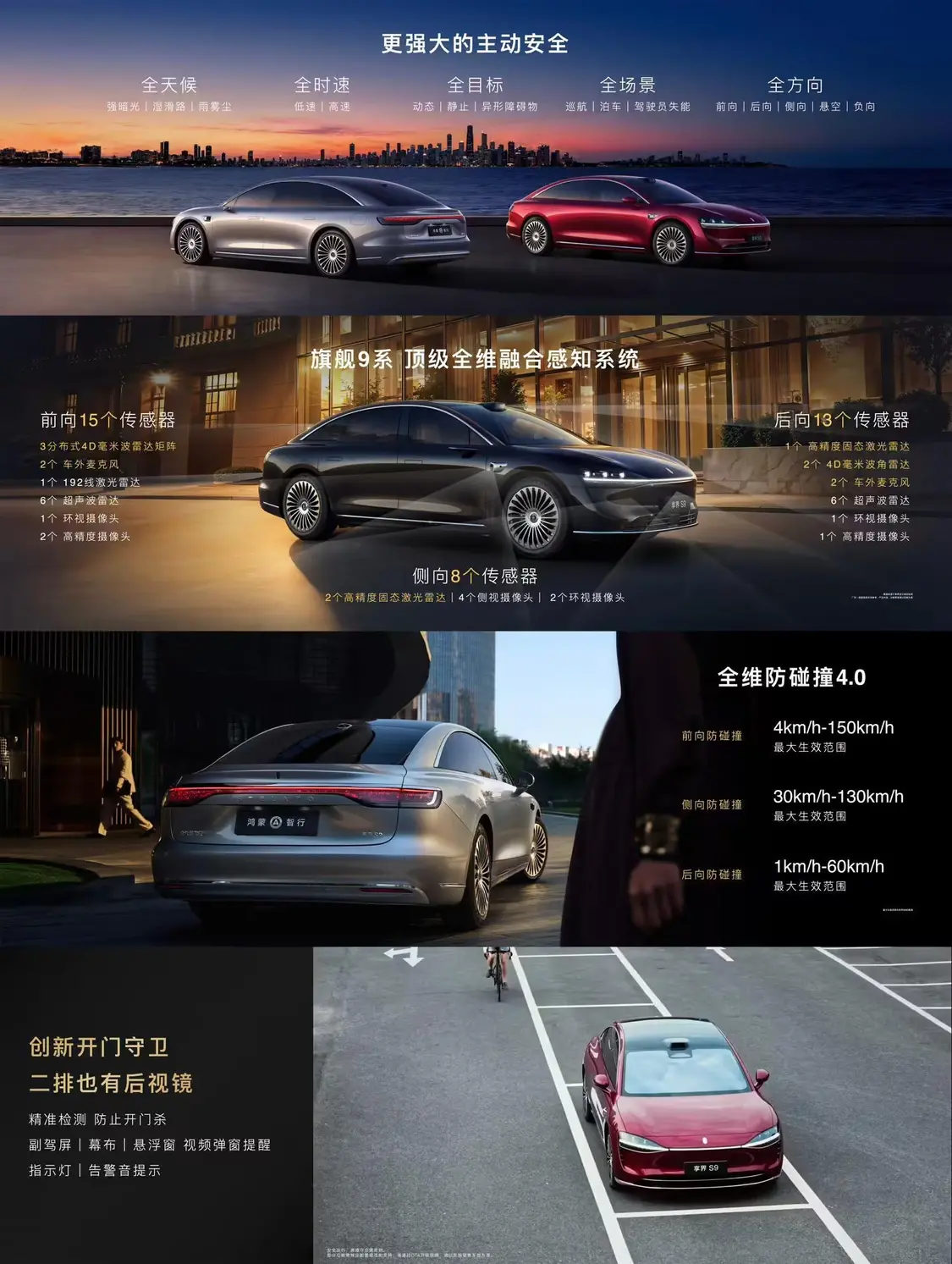 新车顶配全维融合感知系统,搭载 36 个高精度传感器,具有全天候、全时速、全目标、全场景、全方向的超全感知能力,号称全维防碰撞。
