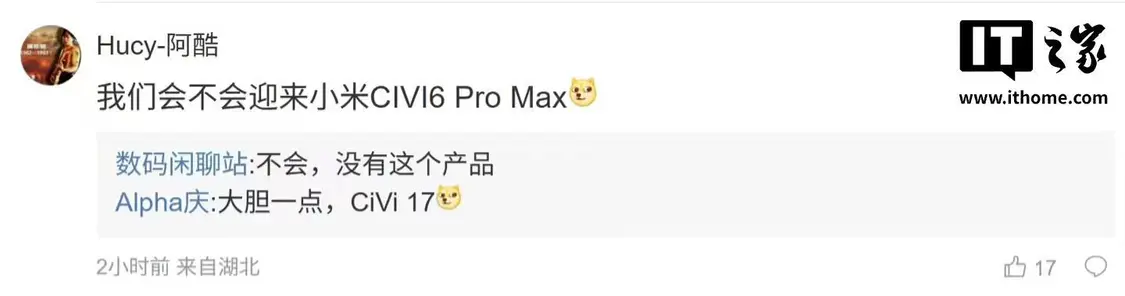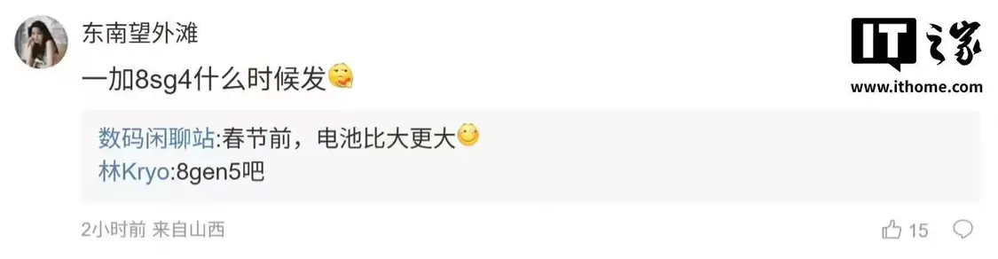 后续有用户在评论区询问:“一加 8sg4 什么时候发”,博主回复道:“春节前,电池比大更大”;另一名用户则询问道:“我们会不会迎来小米 CIVI6 Pro Max”,博主则回复道:“不会,没有这个产品”。