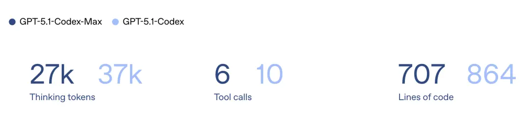 在同样「medium」(中等)推理强度下,它不光表现比GPT-5.1-Codex更好,而且思考过程所用的token量减少约30%。
