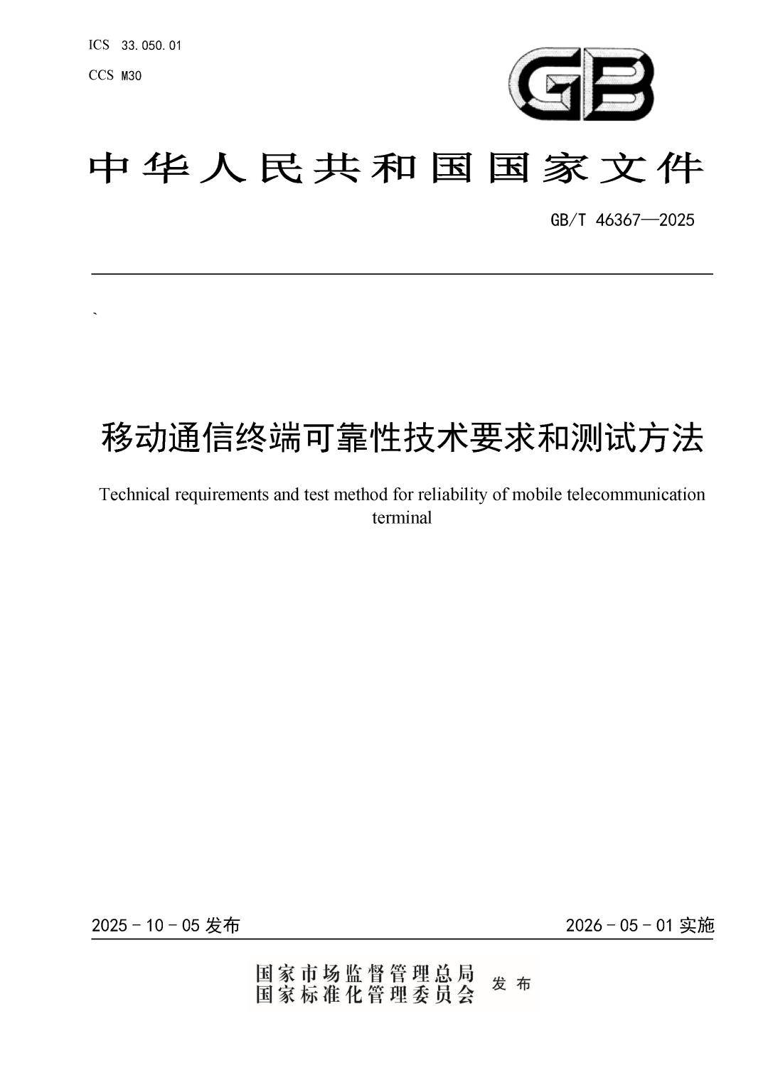 据泰尔终端实验室今日消息,2025 年 10 月 5 日,由中国信息通信研究院(简称“中国信通院”)牵头制定的移动通信终端可靠性国家标准GB/T 46367-2025《移动通信终端可靠性技术要求和测试方法》正式发布,将于 2026 年 5 月 1 日起全面实施。 该标准将可靠性内容划分为环境适应性与机械可靠性两大类别,适用移动手持机、可穿戴设备、平板电脑、智能音箱等多种通信终端产品。 环境适应性涵盖低温存储 / 工作、高温存储 / 工作、温度冲击、湿热及防护等级等要求,机械可靠性则包括跌落(IT之家注:定向跌落、自由跌落、微跌)、接口寿命、按键寿命、折叠寿命、冲击、碰撞、随机振动等项目。 该标准构建了移动通信终端可靠性水平系统性评价体系,并根据产品使用场景或结构特点,设置了三个试验严酷等级的分级要求,填补了行业相关标准空白。 泰尔终端实验室表示,为推动国家标准落地实施,中国信通院泰尔认证中心和泰尔终端实验室同步推出了基于 GB/T 46367-2025 的检测认证服务,此举旨在引导行业更加重视终端产品的可靠性水平,同时也为消费者在选购通信终端产品提供了权威参考。