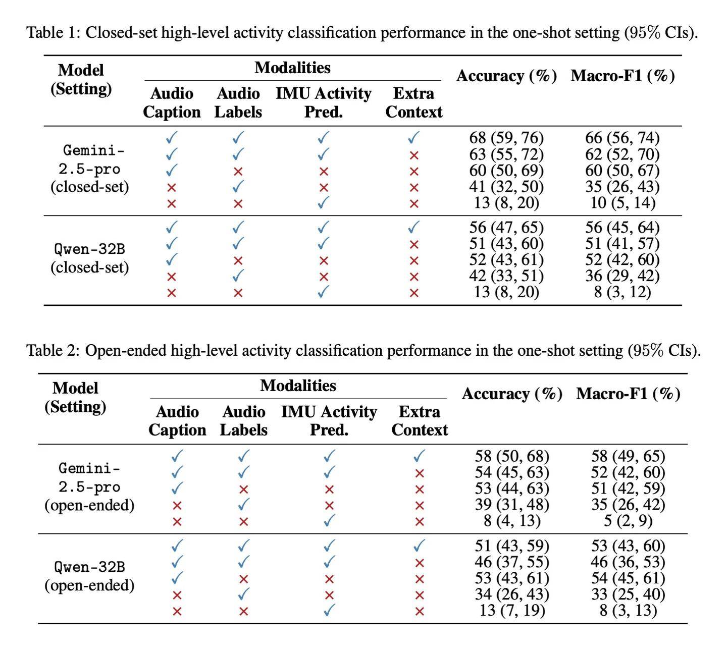 科技媒体 9to5Mac 昨日(11 月 21 日)发布博文,报道称在最新公布的研究报告中,苹果指出大语言模型(LLM)可通过分析音频和运动数据的文本描述,精准识别用户活动,未来可能会应用于 Apple Watch 上。 这项名为“后期多模态传感器融合”(Late Multimodal Sensor Fusion)的技术,主要结合 LLM 的推理能力与传统传感器数据,即使在传感器信息不足的情况下,也能精确判断用户正在进行的具体活动。 研究的核心方法颇具新意。大语言模型并未直接处理用户的原始音频录音或运动数据,而是分析由专门的小型模型生成的文本描述。 具体来说,音频模型会生成描述声音环境的文字(如“水流声”),而基于惯性测量单元(IMU)的运动模型则会输出动作类型的预测文本。这种方式不仅保护了用户隐私,还验证了 LLM 在理解和融合多源文本信息以进行复杂推理方面的强大能力。 为验证该方法,研究团队使用了包含数千小时第一人称视角视频的 Ego4D 数据集。他们从中筛选出 12 种日常活动,包括吸尘、烹饪、洗碗、打篮球、举重等,每段样本时长 20 秒。 随后,研究人员将小模型生成的文本描述输入给谷歌的 Gemini-2.5-pro 和阿里的 Qwen-32B 等多个大语言模型,并测试其在“零样本”(无任何示例)和“单样本”(提供一个示例)两种情况下的识别准确率。 测试结果显示,即使没有任何针对性地训练,大语言模型在活动识别任务中的表现也远超随机猜测的水平,其 F1 分数(衡量精确率和召回率的指标)表现优异。当获得一个参考示例后,模型的准确度还会进一步提升。 这项研究表明,利用 LLM 进行后期融合,可以有效开发出强大的多模态应用,而无需为特定场景开发专门模型,从而节省了额外的内存和计算资源。苹果公司还公开了实验数据和代码,以供其他研究者复现和验证。