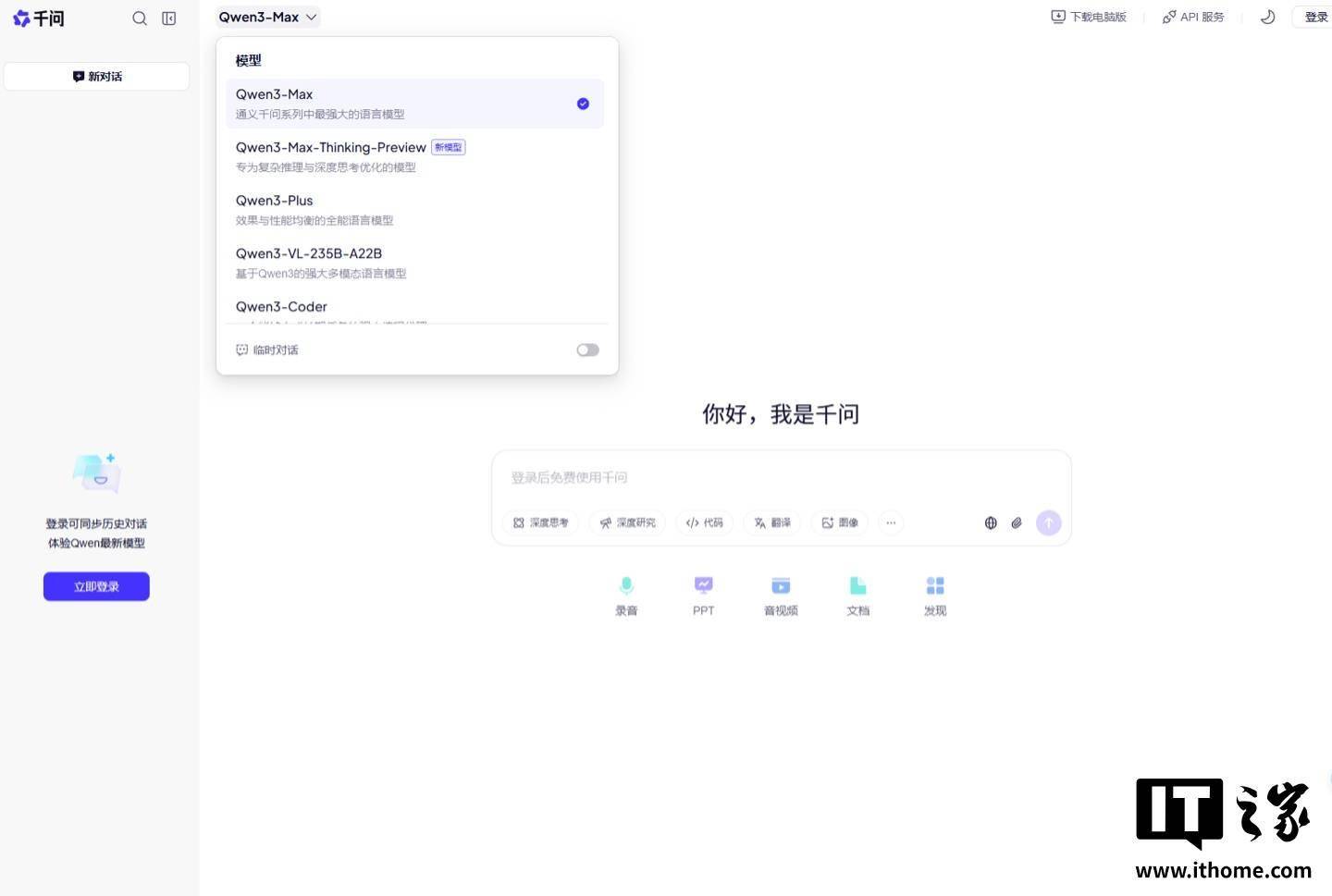 [科技] 阿里千问启用全新域名,提供更多Qwen3系列模型
