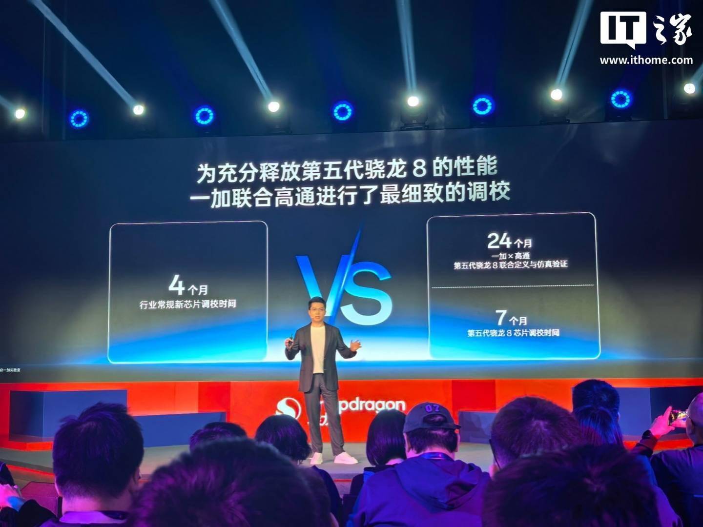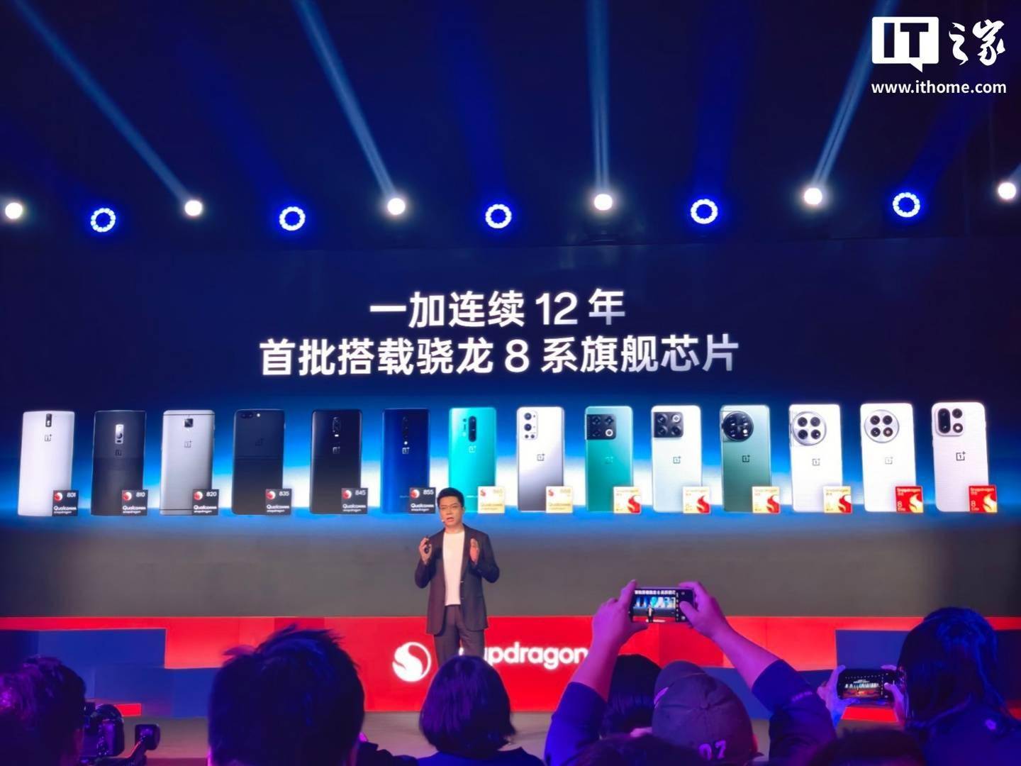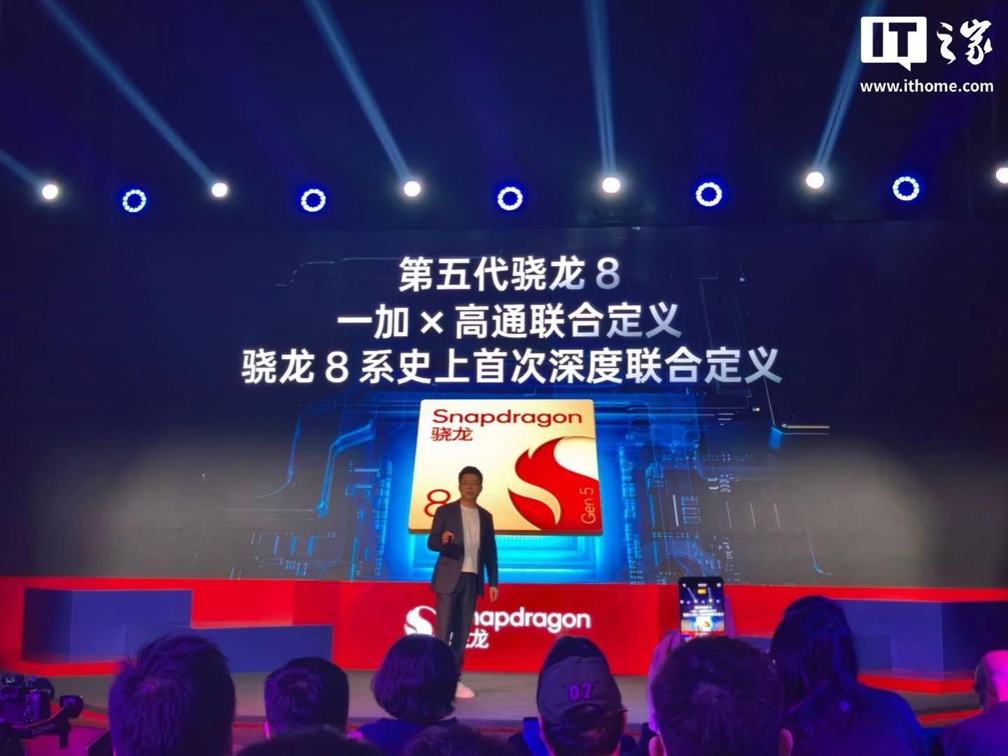 在今日的高通第五代骁龙 8 发布会上,一加中国区总裁李杰现身,宣布一加将全球首发第五代骁龙 8 处理器。