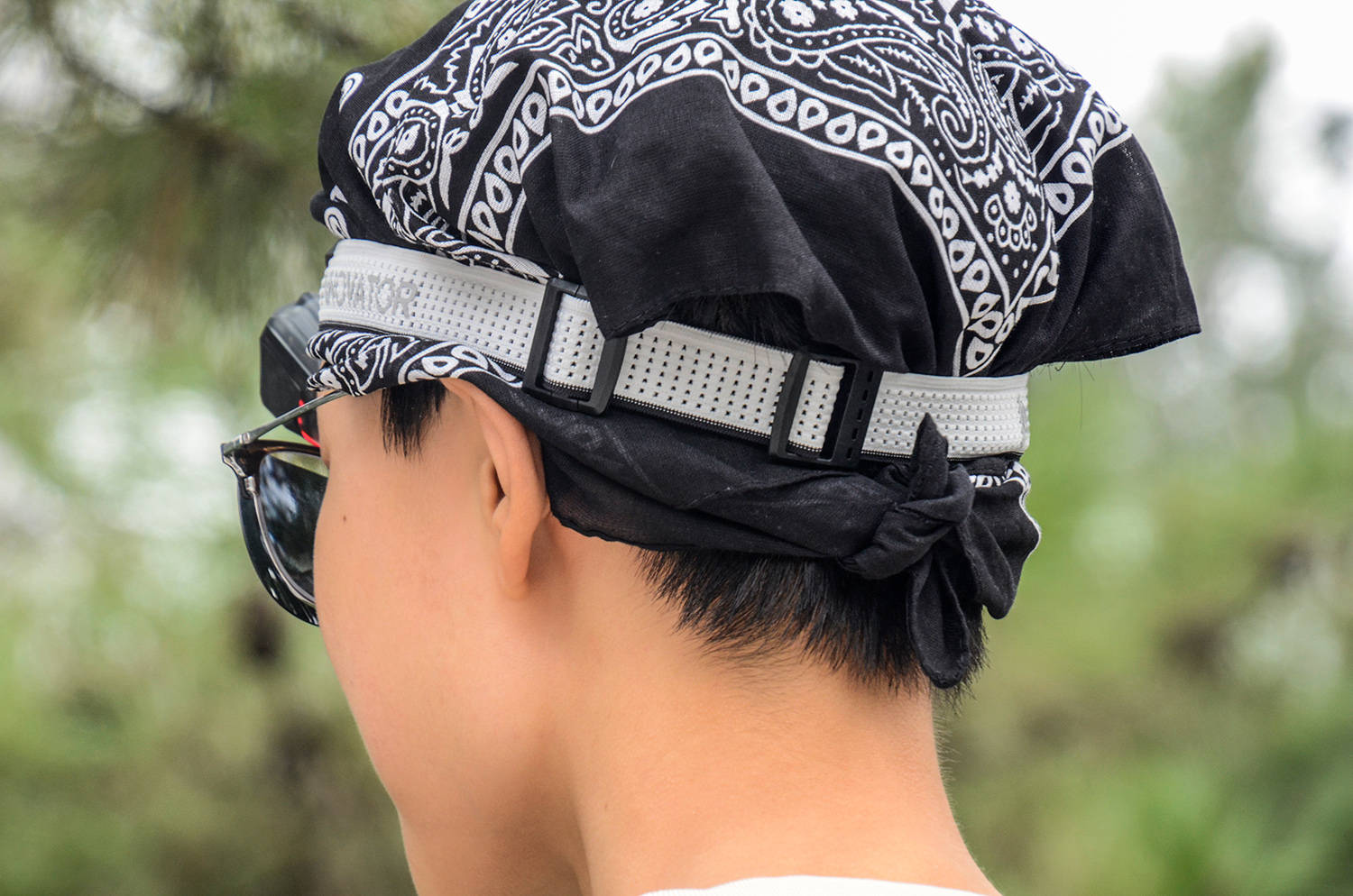 勒着脑袋一圈,那就要保证足够的舒适度,务本H4头灯采用双向可调节的水平弹力头灯带,一是可以根据头围大小调整长度,保证不勒;二是足够的弹力+内侧还有硅胶防滑条,能够保证佩戴过程中不易下滑;三是表面密集打孔,形成通风散热透气,保证不会闷汗。