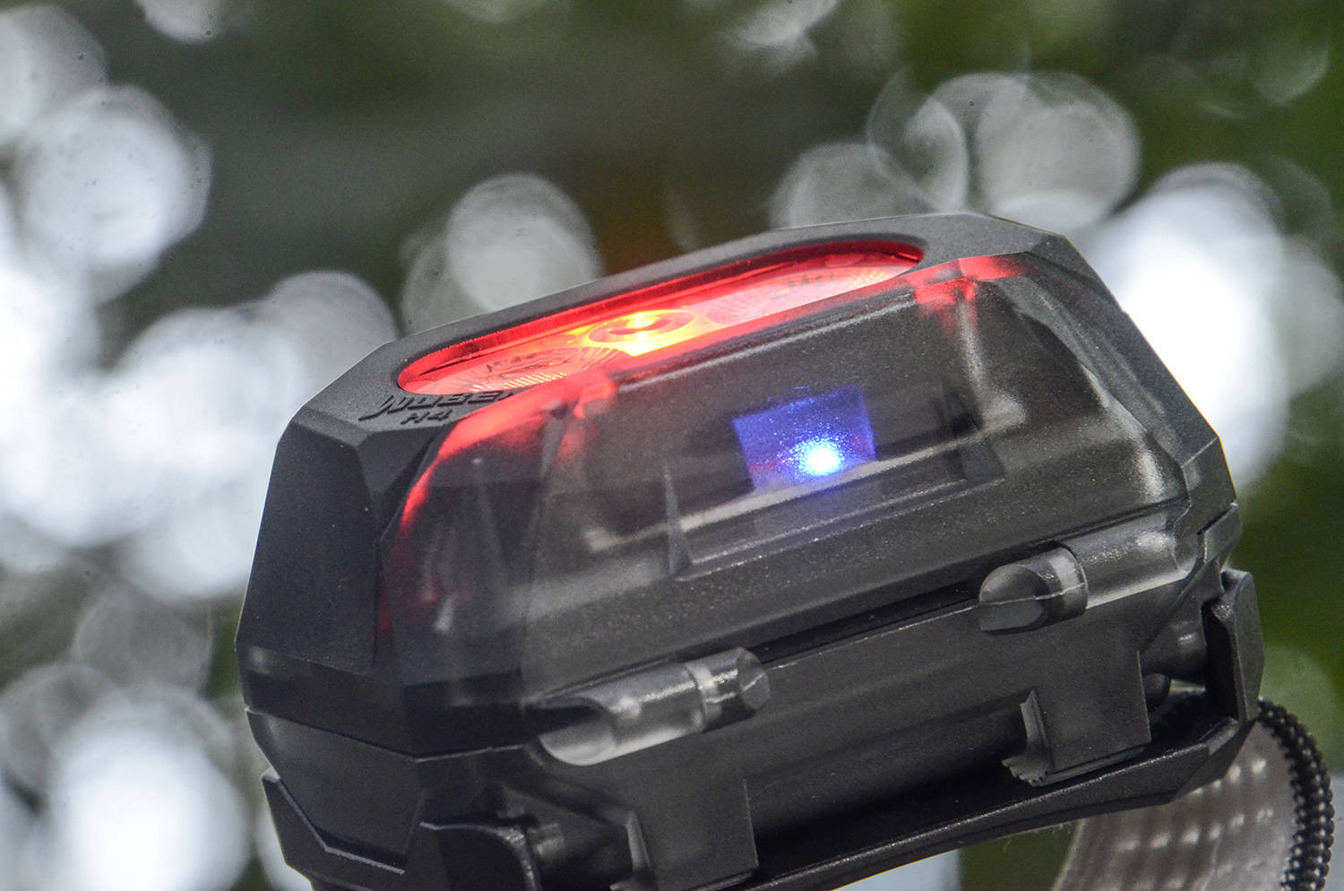 H4灯体底部有一个红蓝双色的电量指示灯,开机后会亮起,通过颜色和状态提示当前电量,直观又方便。