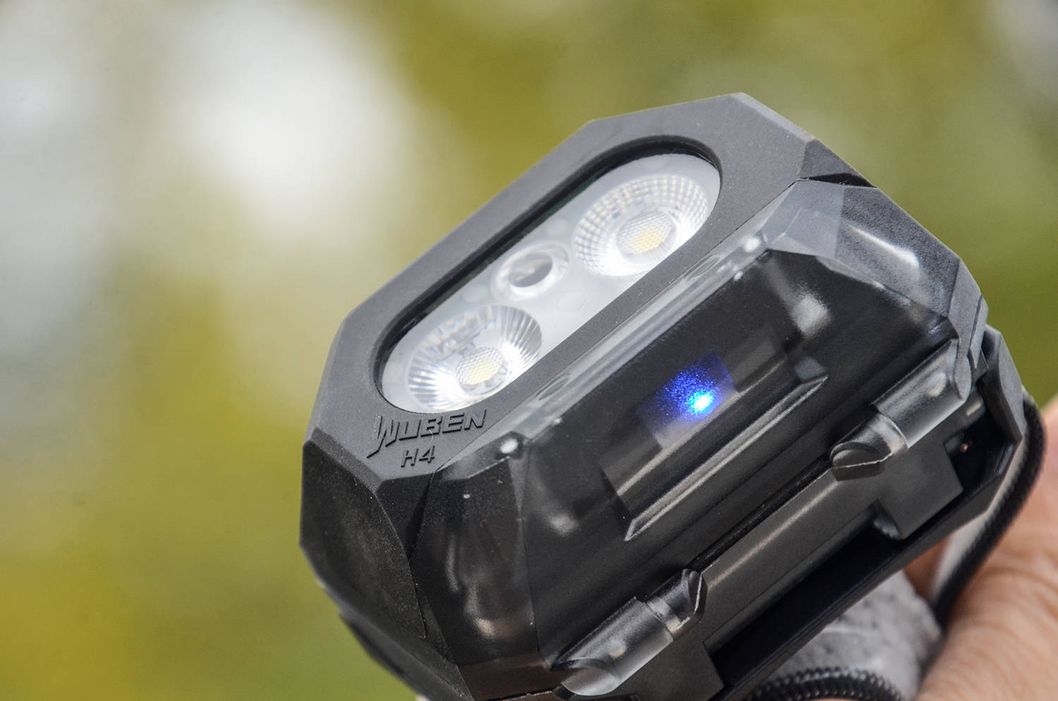 这就是务本WUBEN新推出的头灯——H4,双灯珠具备正白和暖白两种色温,聚光和泛光两种光效,兼容锂电或普通AAA两种电池,最大光通量达到800lm,最远照明距离66米,还有红光和手势控制,真的行。