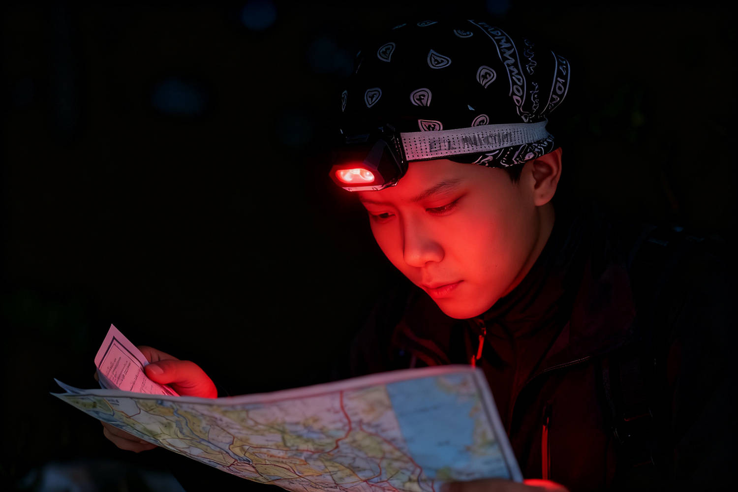 关机状态下,长按任一开关,就能开启红光照明,红光能够有效保护人眼的暗视力,H4的红光为15lm,在黑暗条件下阅读不会觉得刺眼。