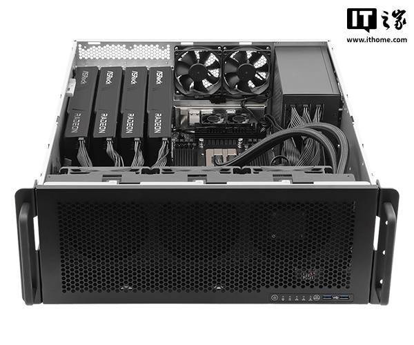 IT之家在此援引 VideoCardz,这台电脑只面向企业客户出售,不会经由零售商渠道销售,配备四路 AMD Radeon AI PRO R9700 Creator 显卡,基于 RDNA 4 架构打造,每张卡都拥有 64 个计算单元、32GB GDDR6 显存,最高加速频率可达 2920MHz,采用企业市场认可的涡轮散热结构,由 12V-2×6 电源接口供电。