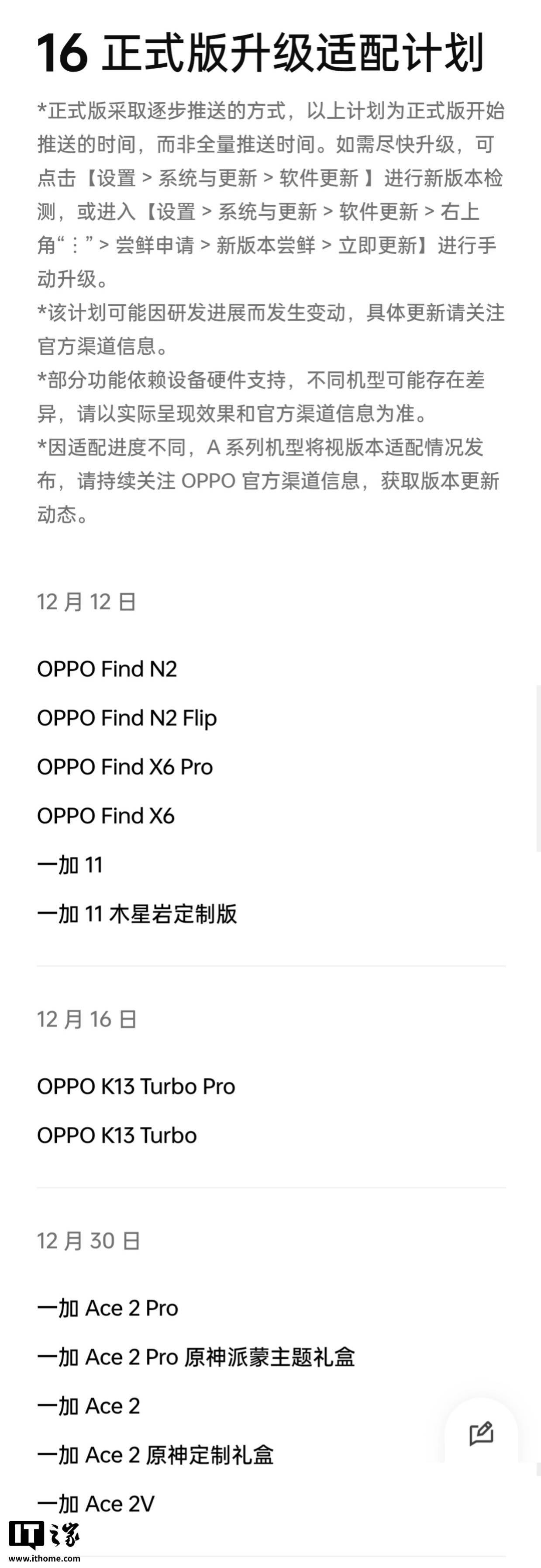 [产品] OPPO ColorOS 16系统12月升级计划公布,多机型适配时间确定