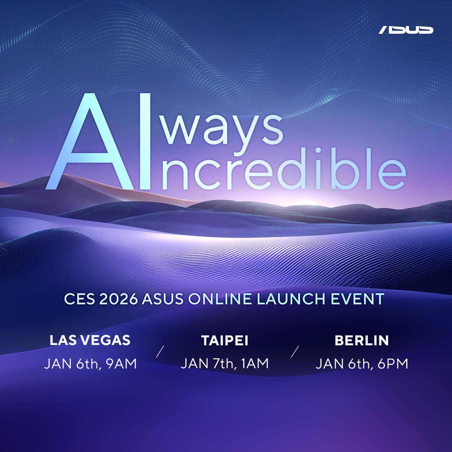 [业界] 华硕CES 2026线上发布会将于北京时间明年1月7日1:00举行