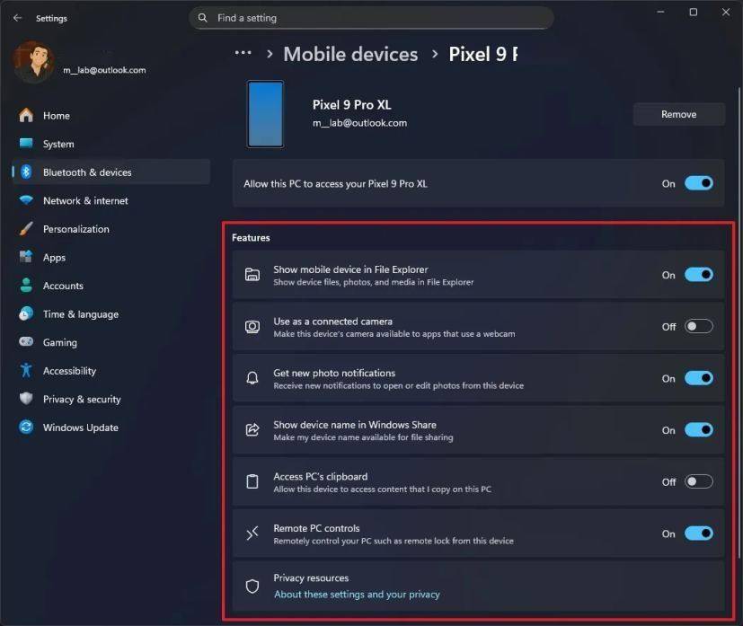 从 KB5070311 更新开始,微软在“移动设备”页面中加入了连接移动设备的选项。