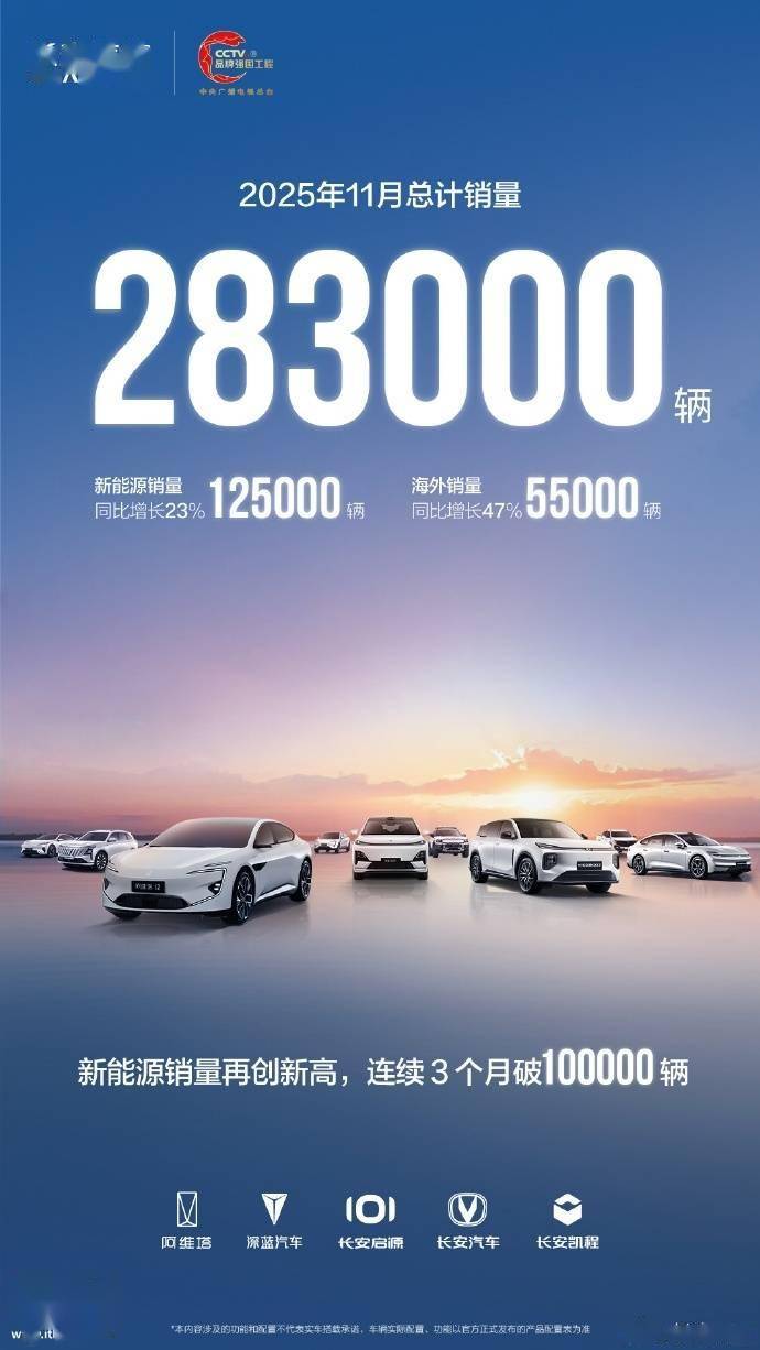另外,长安汽车 11 月新能源销量 12.5 万辆,同比增长 23%,新能源销量再次刷新纪录,连续 3 个月破 100000 辆;海外销量 5.5 万辆,同比增长 47%;总销量 28.3 万辆,同比增长 2.3%。其中,阿维塔销量 14057 辆,深蓝汽车销量 33060 辆,长安启源销量 46909 辆。