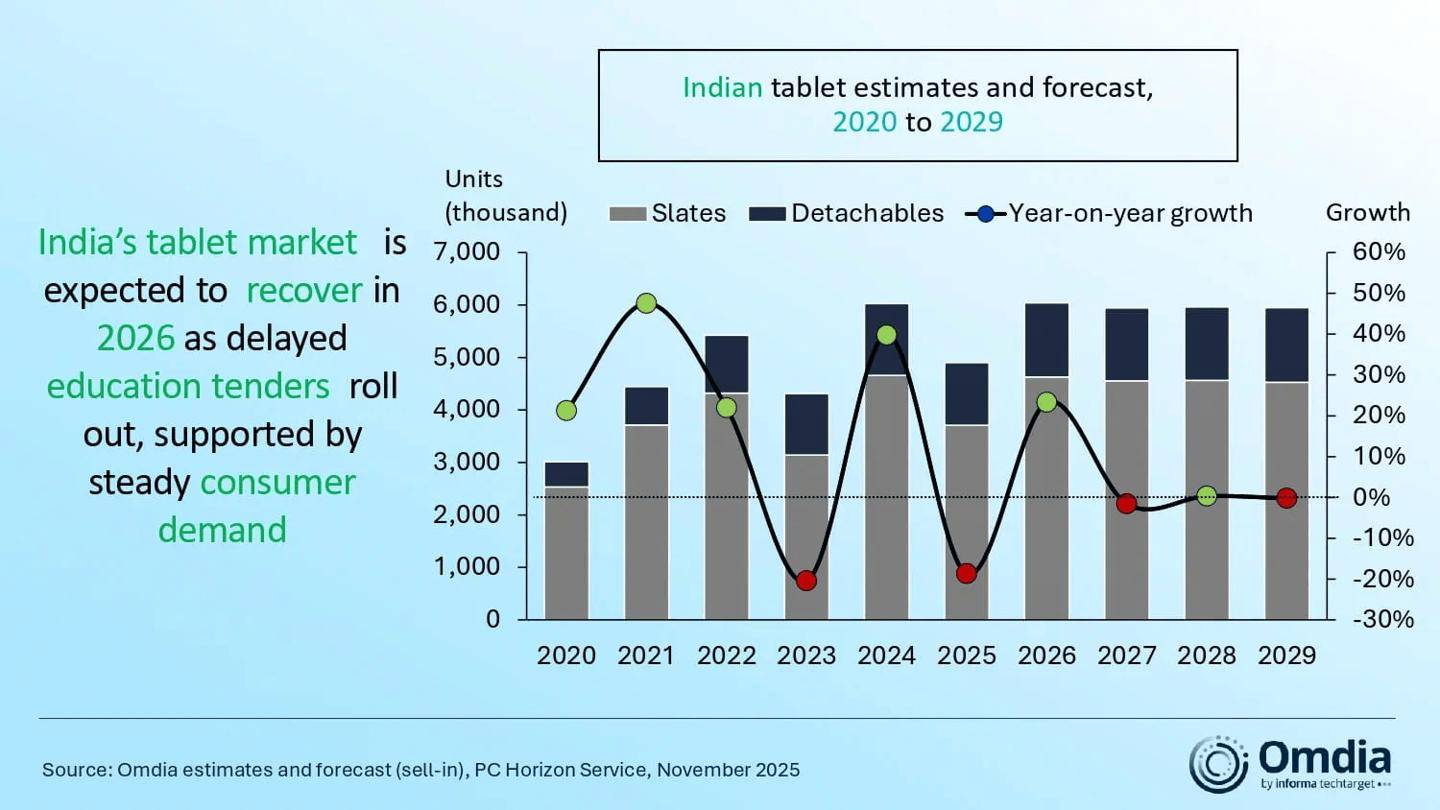 与 PC 市场的火热形成鲜明对比,印度平板电脑市场遭遇寒冬,出货量同比收缩 19% 至 160 万台。尽管消费级平板因娱乐需求增长了 14%,但政府主导的大规模教育项目延期,导致整体平板市场大幅下滑。 细分到品牌方面,IT之家附上 2025 年第 3 季度情况如下: - 三星出货量为 59.1 万台,市场占有率 37.7%,同比下降 23.2%;