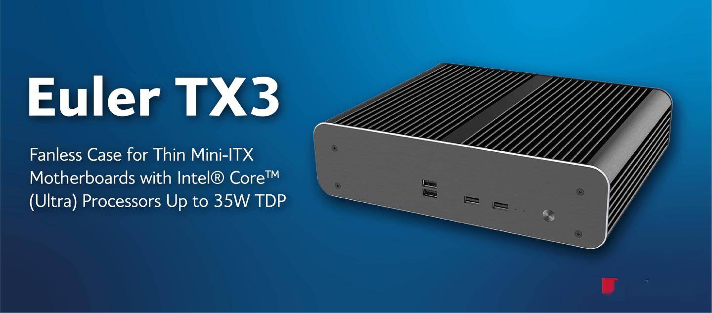 Thin Mini-ITX 是一种长宽与标准 Mini-ITX 相同 (170mm × 170mm) 相同但高度要求更为严苛的主板外形规格,通常被用于超紧凑系统中。 散热解决方案厂商 Akasa 艾克生当地时间本月 12 日推出了一款兼容英特尔平台 Thin Mini-ITX 主板的迷你主机级无风扇被动散热机箱Euler TX3,其支持酷睿第 8~14 代和酷睿 Ultra 第 2 代的 35W TDP 台式机处理器。 Euler TX3 三维 262.6×215× 68.5 (mm),体积 3.9L,以铝材构建机身和散热系统,内置 1 个 9mm 厚度的 2.5 英寸硬盘位。其前方提供电源按键、4 个 USB-A 480Mbps、状态指示灯;后部则在主板后置 I/O 面板开口外还提供了 1 个 COM 孔位、2 个天线插孔和 Kensington 安全锁孔。 Akasa Euler TX3 无风扇机箱售价 148 英镑 / 148 欧元(IT之家注:现汇率约合 1398 / 1227 元人民币)。