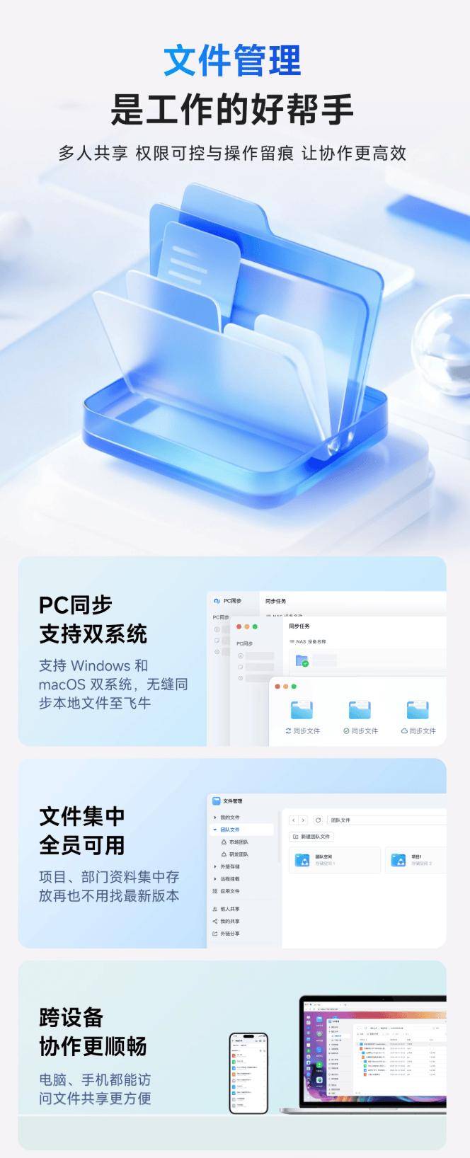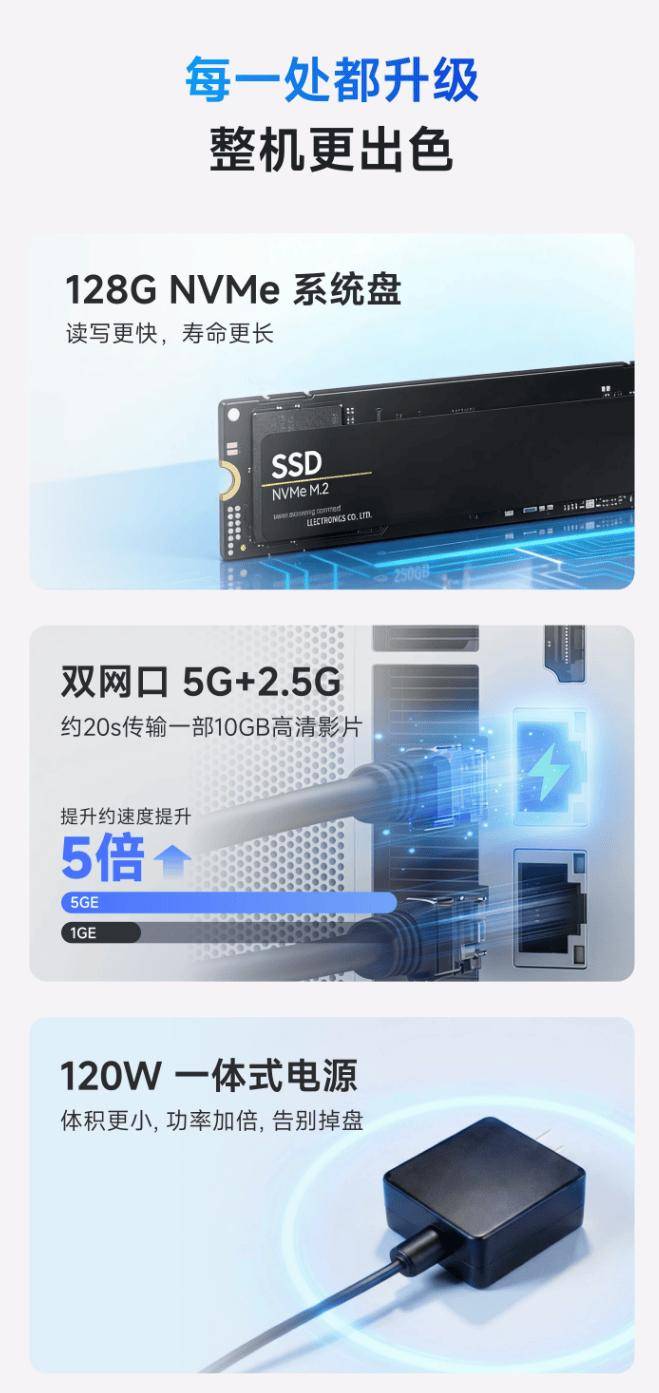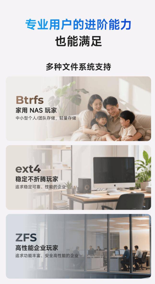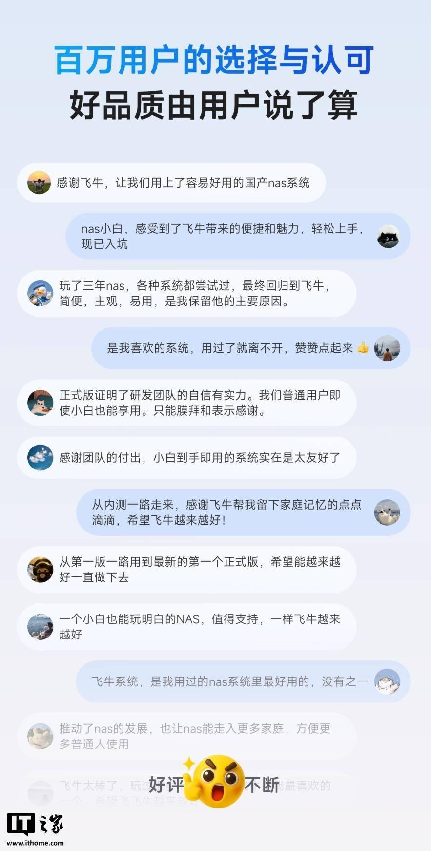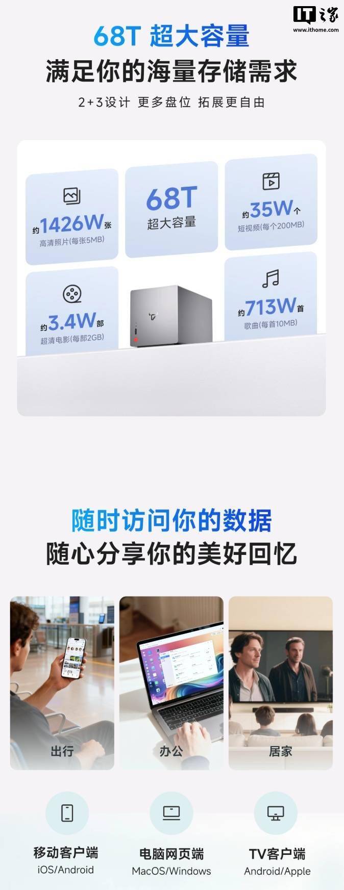 IT之家 12 月 15 日消息,飞牛首款自有 NAS EVO 2 现已在天猫平台开启预售,采用双盘位设计,支持安装 2.5/3.5 英寸机械硬盘,拥有 128GB NVMe 系统盘,最高可扩容至 68TB,售价 1999 元起。 据介绍,这款 NAS 搭载英特尔 N150 四核 CPU,最高睿频可达 3.6GHz,性能释放可达 25W,支持解码 AVC、HEVC、VP9 等视频编码,可选 8GB 和 16GB 内存,主板采用抽屉式推拉设计,可随时升级 / 更换英特尔 / AMD / ARM 平台。 设计方面,这款 NAS 的机身较为小巧,高 121mm,相比同类产品小 50%,支持 Btrfs、ext4、ZFS 等文件系统,可使用 RAID 0/1/mirror/ RAIDZ1/dRAID 1 等冗余备份,外接硬盘柜后还可支持 RAID 5/6/10/Z3/dRAID 1/dRAID 2/dRAID 3 等。 此外,这款 NAS 搭载 fnOS,支持 NFS、SMB、WebDav 等挂载协议,拥有应用商店,可随意安装百款 App,内置虚拟机功能,支持一机多用,自带终身免费远程访问服务,随机附赠 5 年 12mbps 高速流量,价值 495 元。 特色功能方面,这款 NAS 支持本地 AI 相册、影视娱乐中心,可自动刮削影音文件,满足多端同步需求,还可以无缝同步 PC 与 Mac 的文件,支持安装百度网盘、迅雷、Aria 2、Qbittorrent 等下载工具,兼容 Docker 生态。 IT之家附该产品详细参数如下: 目前该产品已在天猫开启预售,价格 1999 元起。