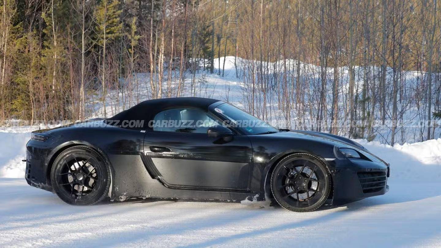 汽车媒体 CarBuzz 今天(12 月 20 日)发布博文,报道称保时捷(Porsche)全新 718 Boxster 纯电版原型车打破了常规研发周期,被目击开启了罕见的第四轮冬季测试。 IT之家援引博文介绍,保时捷 718 Boxster 纯电版目前的研发进度显得异常漫长,该车型早在 2022 年 12 月便首次现身冬季测试,而最新披露的路测图显示,该车已开启了第四轮冬季极寒测试。 该媒体认为对于一款量产车而言,如此漫长的路试周期在汽车行业极为罕见,甚至超过了部分车企一代电动技术的更迭周期,刷新了保时捷的研发周期纪录。 这表明保时捷对这款入门级纯电跑车的调教极为谨慎,同时也暗示了其开发过程中可能遭遇了预料之外的挑战。 外观方面,本次曝光的路测图清晰展示了全新的车头灯组设计,其采用了保时捷家族标志性的四点式日间行车灯(DRL),取代了早期测试车上的临时 HID 灯泡。 车尾部分的变化同样显著,此前用于迷惑外界的假排气管和引擎盖隆起已被移除,取而代之的是清晰可见的贯穿式 LED 尾灯带。此外,新车在尾部中央设置了充电接口,进一步确认了其纯电身份。 此次曝光的原型车内部配备了防滚架,这一细节引起了业内的广泛关注。防滚架的出现通常意味着车辆正在进行激烈的动态极限测试,或者该车此前刚在纽博格林赛道(Nürburgring)完成了高速测试任务。 作为一款承载保时捷运动基因的车型,这一配置暗示工程师正专注于打磨其底盘响应与操控极限,以确保其在电动化转型后仍能提供顶级的驾驶乐趣。 尽管测试频频曝光,但车迷们仍需等待更长时间。保时捷原计划于 2025 年发布这款纯电跑车,但受限于电池供应、软件开发及市场策略调整等多重因素,其上市时间已被推迟至 2027 年。