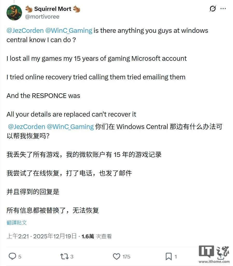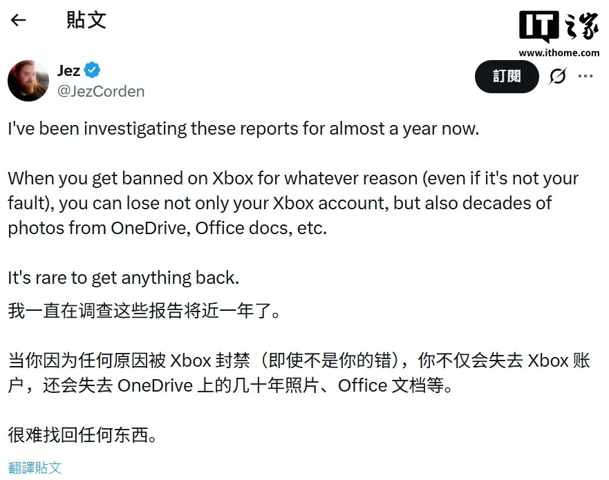 随后 Windows Central 编辑 Jez Corden 对此表示,这类事件并非孤立个案,他已经调查类似报告接近一年,而官方的处理结果往往对玩家不利,并且更糟糕的是,微软账号早就与 OneDrive、Office 等服务深度集成,被盗号后这些数据也会一并丢失。
