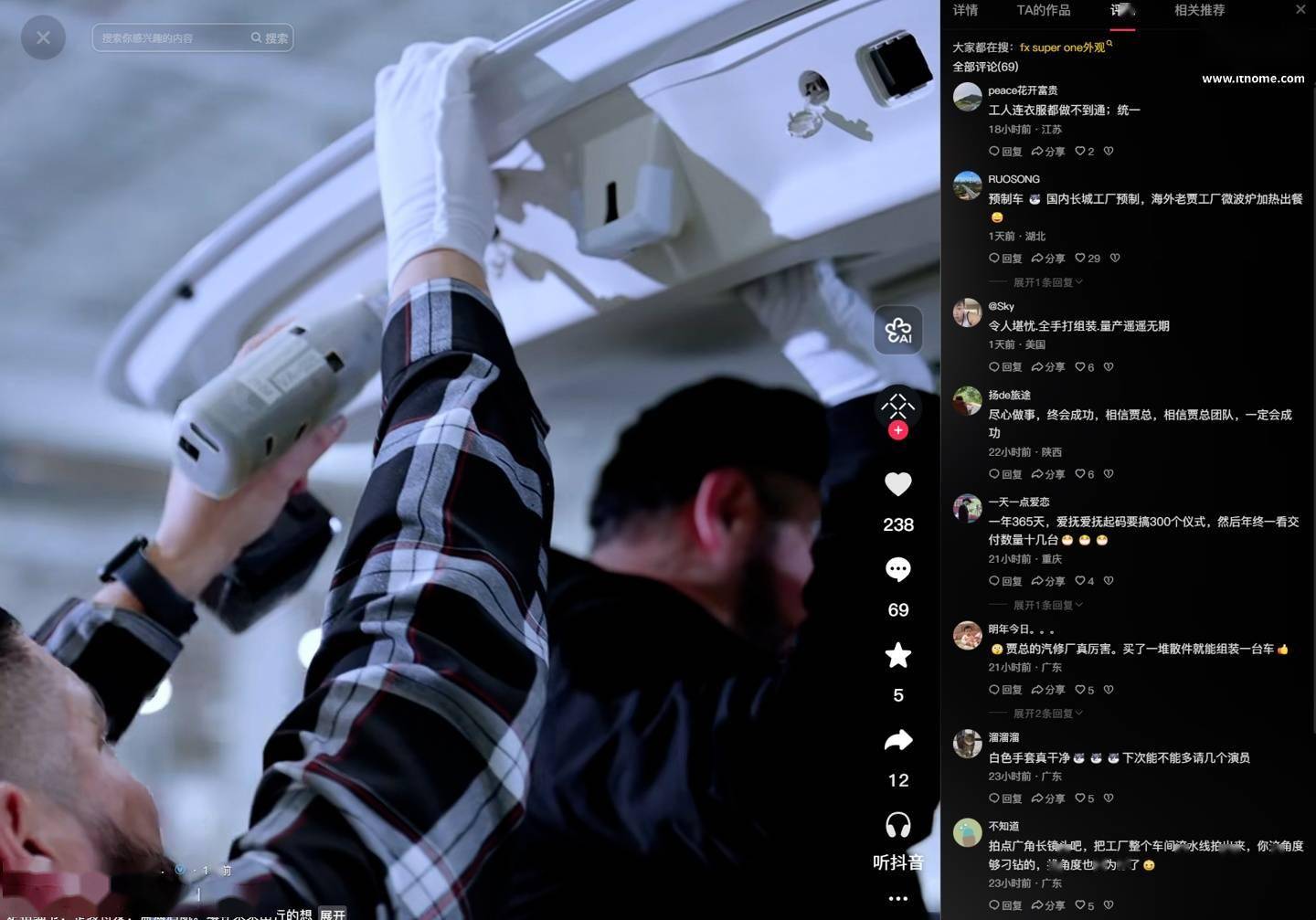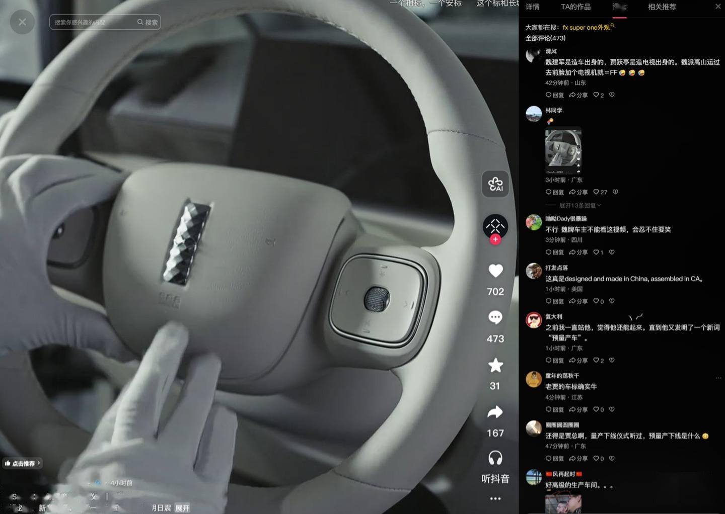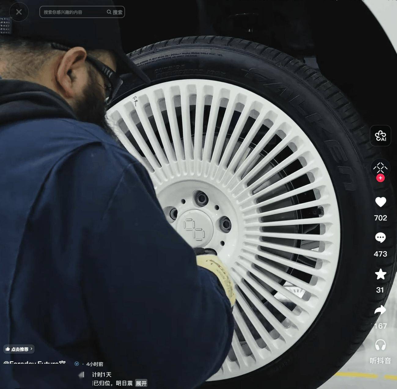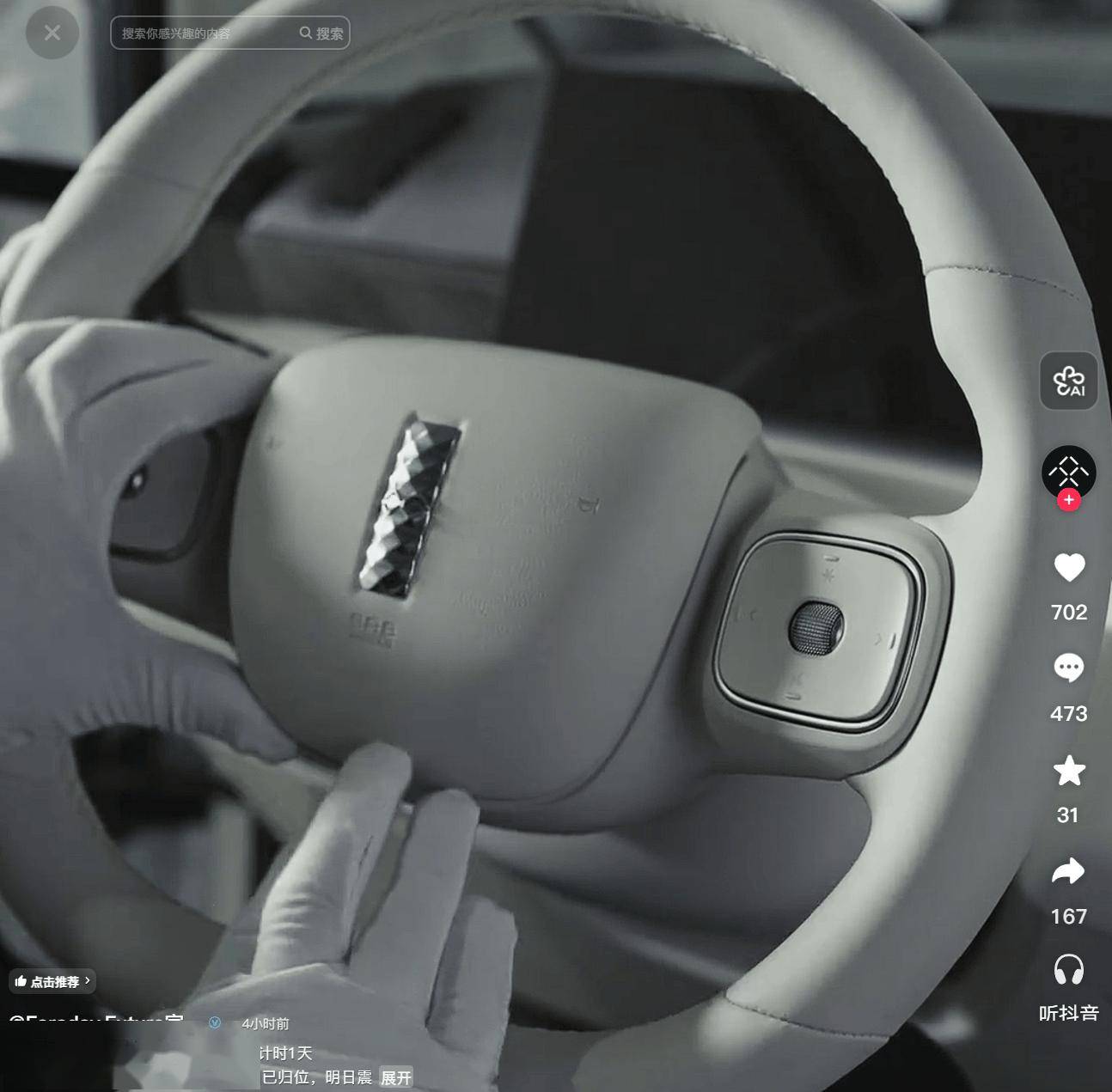 Faraday Future 官方账号今日发布视频,宣布 FX Super One 预量产车下线仪式将在明天举行。 在视频的闪回画面里,FX Super One 的细节公布:新车的轮毂采用纯白设计,中心处为 FX 车标;车内的方向盘也有车标,但是与轮毂不同的是,该处的车标印在一块亮面装饰条上,而非直接印在方向盘上。 另外,法拉第未来还在过往视频中展示了工程师打磨车辆细节的场景。 据IT之家此前报道,今年 12 月 8 日,法拉第未来创始人贾跃亭发文称,FX Super One 首批车下线仪式将于当地时间 12 月 21 日在汉福德工厂举行。至此,首批下线的 Super One 预量产车所需的全部零件已经到齐,每辆单车包含近 3000 个零部件,正式启动生产。 法拉第未来 FX Super One 已于今年 10 月 28 日在阿联酋迪拜正式发布,是全球首款 First Class EAI-MPV,号称“FF 中美汽车产业桥梁战略的首款产品”,拥有 AIHER 混增与 AIEV 纯电版本,市场售价 30.9 万迪拉姆(IT之家注:现汇率约合 59.4 万元人民币)。