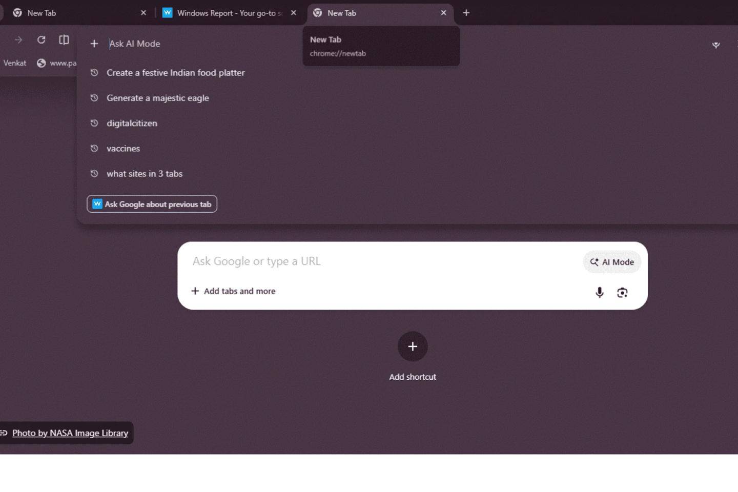 据科技媒体 Windows Report 今天报道,谷歌一直在改进 Chrome 浏览器的新标签页,而最近的 Chrome Canary 金丝雀版本显示,新标签页的设计已趋于稳定,AI 功能的表现也更加一致。 IT之家在此援引 Windows Report,目前 Chrome Canary 新标签页搜索框包含一个完全可用的“+”菜单,可直接添加图片、文件或启动深度搜索,所有选项均可以打开,体验也非常完整,改掉了往日的半成品迹象。 并且,桌面版浏览器的 AI 模式还新增了上下文感知功能,当用户从地址栏启动 AI 模式时,Chrome 会显示一个询问面板,内含建议类操作,可询问 Google 上一个标签页的内容,实现总结等操作,无需切换标签页或复制粘贴内容就能触发,让跨标签页任务变得更加轻松。 同时,Android 端 Chrome Canary 也加入了类似功能,地址栏内的“+”按钮新增了一个标签页选项按钮,与相机、图库和文件导入并列显示,点开后会出现一个最近标签页列表,用户可选择其中的一个标签页,将其附加进 AI 提问中。 此外,谷歌还对 AI 模式做出了一项小改进,当用户从新标签页搜索框启动 AI 模式时,地址栏不再出现“chrome://contextual-tasks”网址,而是直接显示“AI 模式”。