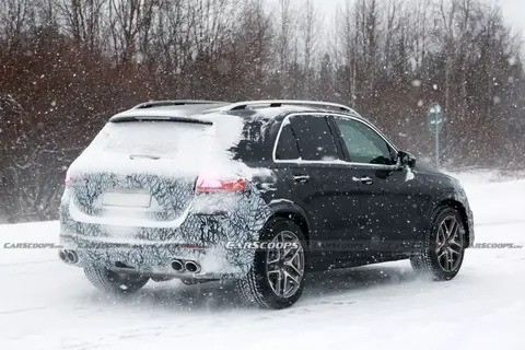 此外,新车前脸部分还将配备全新样式的进气格栅,位置处于两侧日行灯之间。虽然测试车辆上的格栅区域目前仍被遮蔽,但据推测其尺寸将明显大于现款,并可能借鉴此前发布的全新电动GLC的设计思路。新格栅不仅面积更大,还将增加外部边框结构,这是当前GLE系列包括AMG版本所不具备的细节。同时,前保险杠造型预计也将有所调整,轮毂方面或推出新设计样式。不过由于仅为中期改款,整车主体车身面板将维持不变。