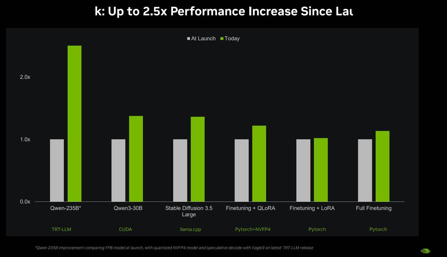 科技媒体 TechPowerUp 今天(1 月 6 日)发布博文,报道称在 CES 2026 展会期间,英伟达发布了 DGX Spark 和 DGX Station 两款桌面级 AI 超级计算机,宣告本地 AI 开发进入“超算时代”。 这两款设备基于最新的 NVIDIA Grace Blackwell 架构,配备大容量统一内存和 Petaflop(千万亿次)级 AI 性能。 其核心目标是让开发者、研究人员和数据科学家无需依赖云端集群,即可在本地桌面上开发、微调并运行从 1000 亿到 1 万亿参数的开源及前沿 AI 模型,打通了从本地原型设计到云端大规模扩展的通道。 DGX Spark:平衡效能与便携 作为入门级旗舰,DGX Spark 专为 1000 亿参数级别的模型设计。该系统引入了 NVFP4 数据格式,能将 AI 模型压缩高达 70% 且不损失智能表现。 图源:英伟达 在实际应用场景中,DGX Spark 展现了惊人的性能优势:在运行 Black Forest Labs 的 FLUX.2 等视频生成模型时,其速度相比搭载 M4 Max 芯片的顶级 MacBook Pro 快了 8 倍。 此外,英伟达优化与开源社区(如 llama.cpp)的深度合作,该系统在运行 SOTA(最先进)模型时平均性能提升了 35%,并显著加快了 LLM(大语言模型)的加载速度。 DGX Station:单机运行万亿参数模型 面向企业级和前沿实验室的 DGX Station 则不仅是性能怪兽,更是行业标杆。该机型搭载 GB300 Grace Blackwell Ultra 超级芯片,配备高达 775 GB 的 FP4 精度一致性内存,这一配置让其能够本地运行高达 1 万亿参数的巨型模型。 IT之家注:一致性内存(Coherent Memory)指在 CPU 和 GPU 之间共享同一地址空间并实现硬件级数据同步的架构,通过 2026 年主流的 NVLink-C2C 或 PCIe Gen6/7 互连技术,数据可以在不同处理器间自由流动,无需显式的内存拷贝过程,显著降低了延迟。 FP4 精度是一种 4 位浮点格式(通常采用 1 位符号、2 位指数、1 位尾数的 E2M1 布局),专为 Blackwell 及后续 Rubin 架构优化,能在保持模型精度的前提下,将显存占用降低至 FP16 的四分之一,吞吐量提升高达 2-3 倍。 英伟达明确列出了其支持的一系列前沿模型,包括 Kimi-K2 Thinking、DeepSeek-V3.2、Mistral Large 3、Meta Llama 4 Maverick 以及 OpenAI gpt-oss-120b。 vLLM 核心维护者 Kaichao You 表示,DGX Station 改变了开发动态,让团队能以极低成本在本地测试 GB300 专属特性。 为了构建完整的本地 AI 生态,NVIDIA 宣布了多项软件与合作伙伴计划。DGX Spark 现已支持 NVIDIA AI Enterprise 软件栈,并提供了针对机器人(如 Hugging Face Reachy Mini)、基因组学和金融分析的全新开发手册(Playbooks)。 在硬件供应方面,DGX Spark 及合作伙伴推出的 GB10 系统即日起通过戴尔、惠普、联想、华硕等厂商发售,而旗舰级的 DGX Station 将于今年晚些时候正式上市。