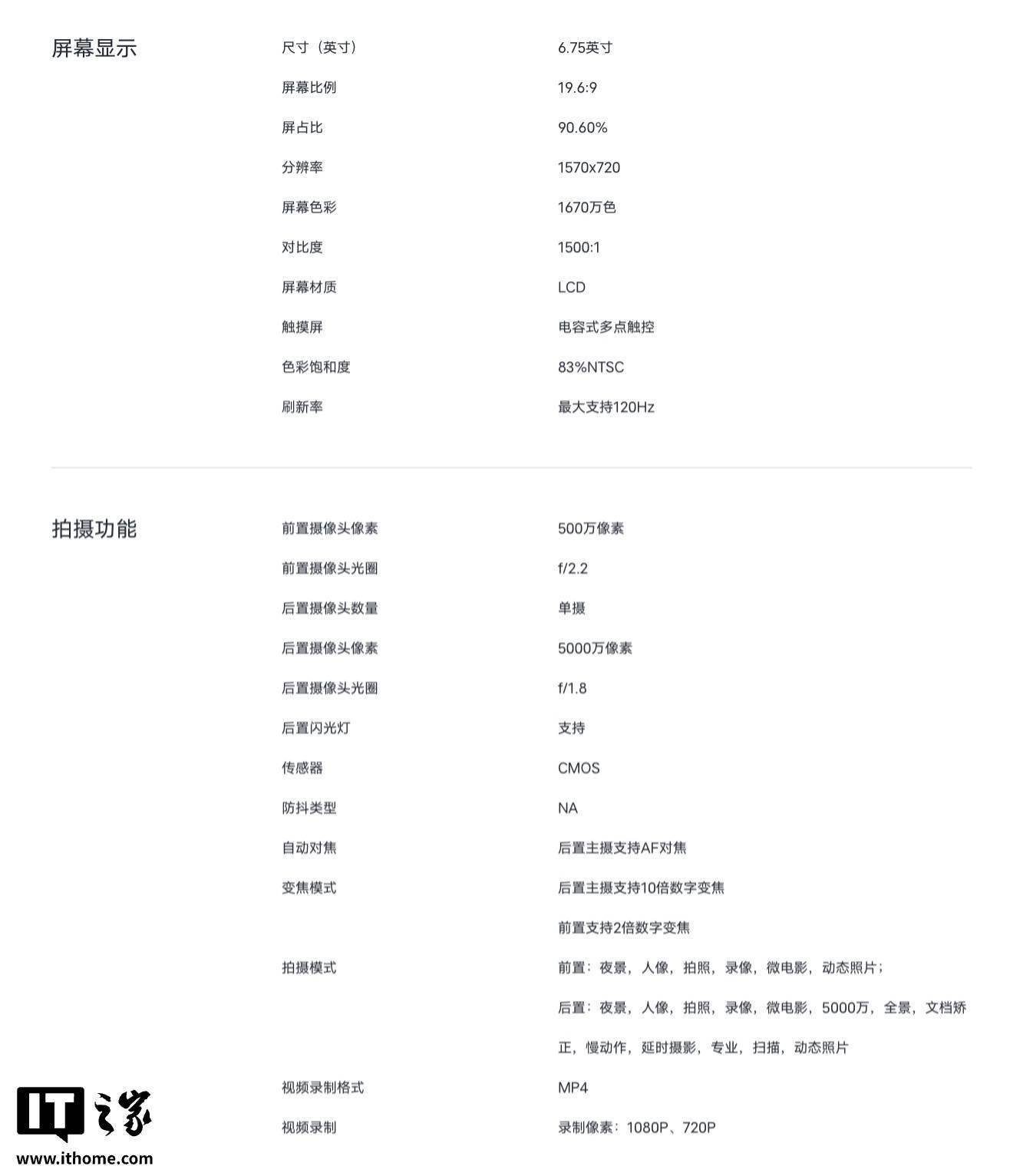 该机提供曜石黑、星河银、凤迎金配色,机身厚度 8.39mm,重量 219g,手机正面匹配一块 6.75 英寸 1520x720 分辨率 120Hz LCD 面板,匹配 5MP 自拍摄像头;手机背面采用双摄造型,实际上仅提供了 50MP 主摄,另外一个为“红外遥控”。 该机搭载高通骁龙 4 Gen 2 处理器,提供 8/12GB RAM 及 256 / 512GB 存储空间可选,支持 NFC,拥有 USB-C 2.0 接口,搭载 7200mAh 电池(支持 44W 充电),支持低温长寿续航特性,可持续亮屏使用 16.3 小时或连续导航 15.5 小时,-20℃ 至 40℃ 稳定续航,省电模式下支持 3 小时导航。 IT之家附产品参数如下:
