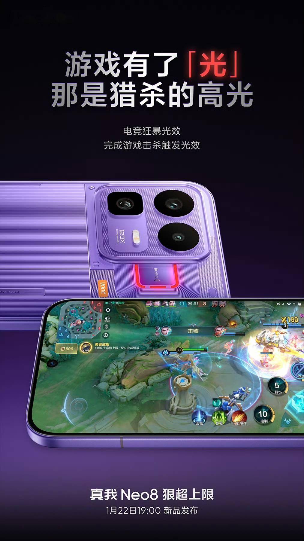 今天早些时候,官方公布了“潮玩电竞旗舰”真我 Neo8 的三款配色:赛博紫、机甲灰、起源白。新机采用全新的透明 RGB 设计,将于 1 月 22 日 19 时正式发布。 新机将全球首发 165Hz 三星苍穹屏,搭载 M14 发光基材,适配《穿越火线-枪战王者》、《三角洲行动》手游、《和平精英》等游戏的原生 165 FPS 模式。