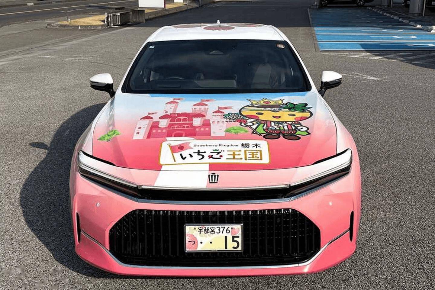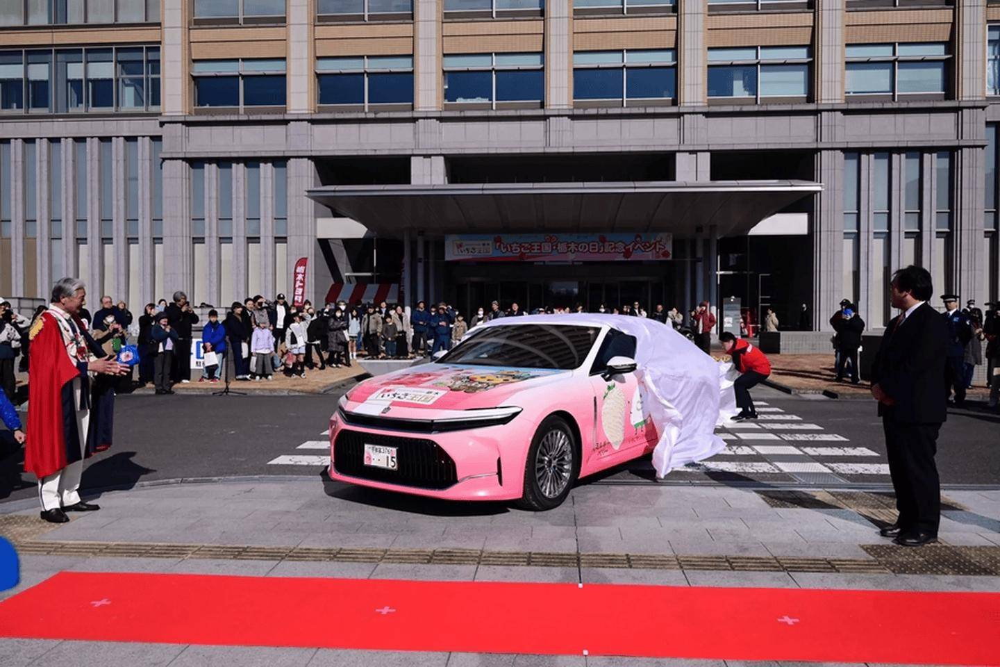 汽车经销商栃木丰田(Tochigi Toyota)为庆祝成立 80 周年,基于丰田皇冠(Crown)轿车 Z 版,推出了全球独一无二的“草莓皇冠”(Ichigo Crown)。 丰田皇冠轿车通常以黑色或灰色的严肃形象示人,常作为日本警车或出租车穿梭于街头。而栃木丰田推出的 Ichigo Crown 打破了这一刻板印象,一方面是庆祝其成立 80 周年,另一方面是致敬栃木县“日本草莓产量第一县”的地位。 外观方面,车身采用大胆的粉色基底搭配柔和的白色渐变,视觉效果宛如精致的甜点推车而非行政座驾。车身侧面绘制了“Tochiotome”、“Tochiaika”和“Skyberry”等当地著名草莓品种的图案,引擎盖上还绘有一座粉色城堡。此外进一步增强了车辆的俏皮感与亲和力,车身还融入了“Tochimaru-kun”等三个卡通吉祥物形象。 该车基于皇冠轿车 Z 版(Z trim)打造,搭载了丰田成熟的油电混合动力系统。动力总成由一台 2.5 升四缸发动机与双电机组成,系统综合最大功率达到 234 马力(172 kW),并采用后轮驱动布局。 丰田于 1 月 18 日在栃木县厅举办的“草莓王国栃木日”活动上正式揭幕了这款孤品车型。栃木县知事福田富一(Fukuda Tomiichi)身着“草莓王国国王”的戏服出席了发布仪式,亲自为新车站台。IT之家附上相关图片如下: